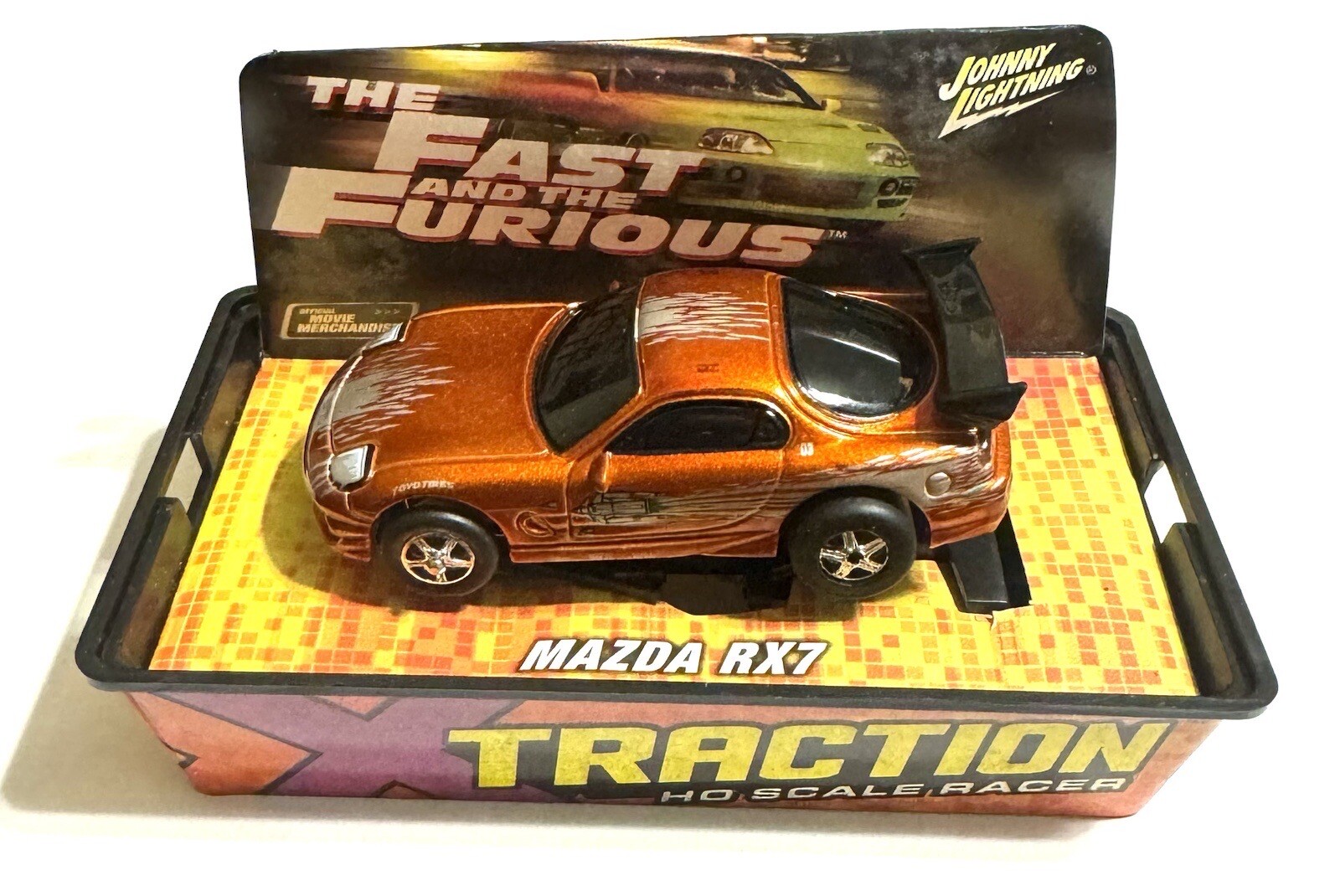 JOHNNY LIGHTNING TRACTION FAST AND THE FURIOUS ORANGE MAZDA RX7 HO SLOT CAR MIB