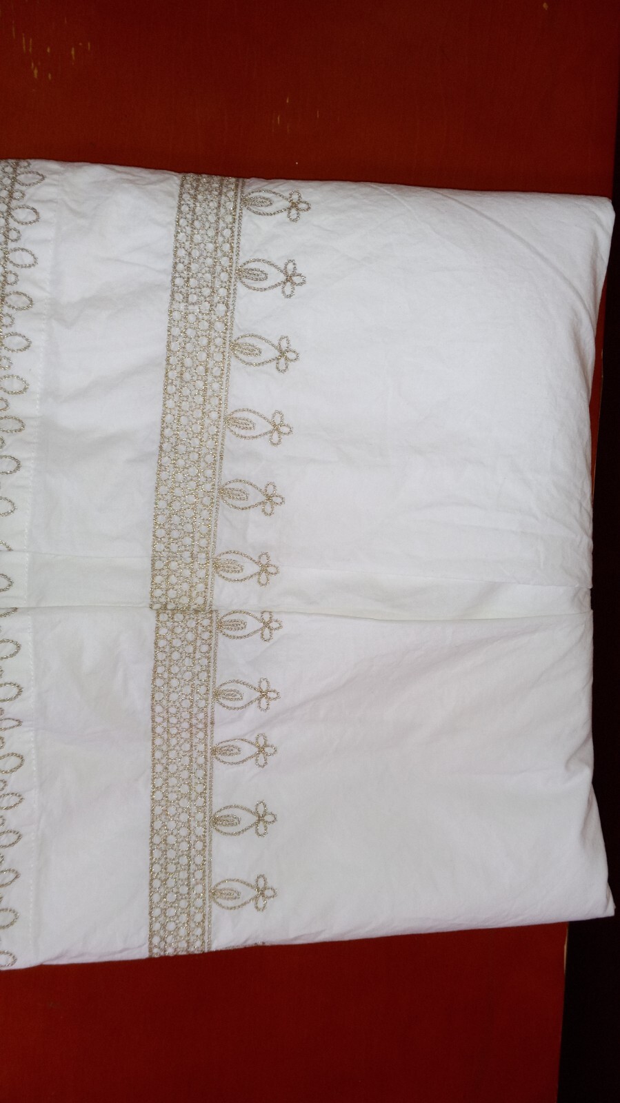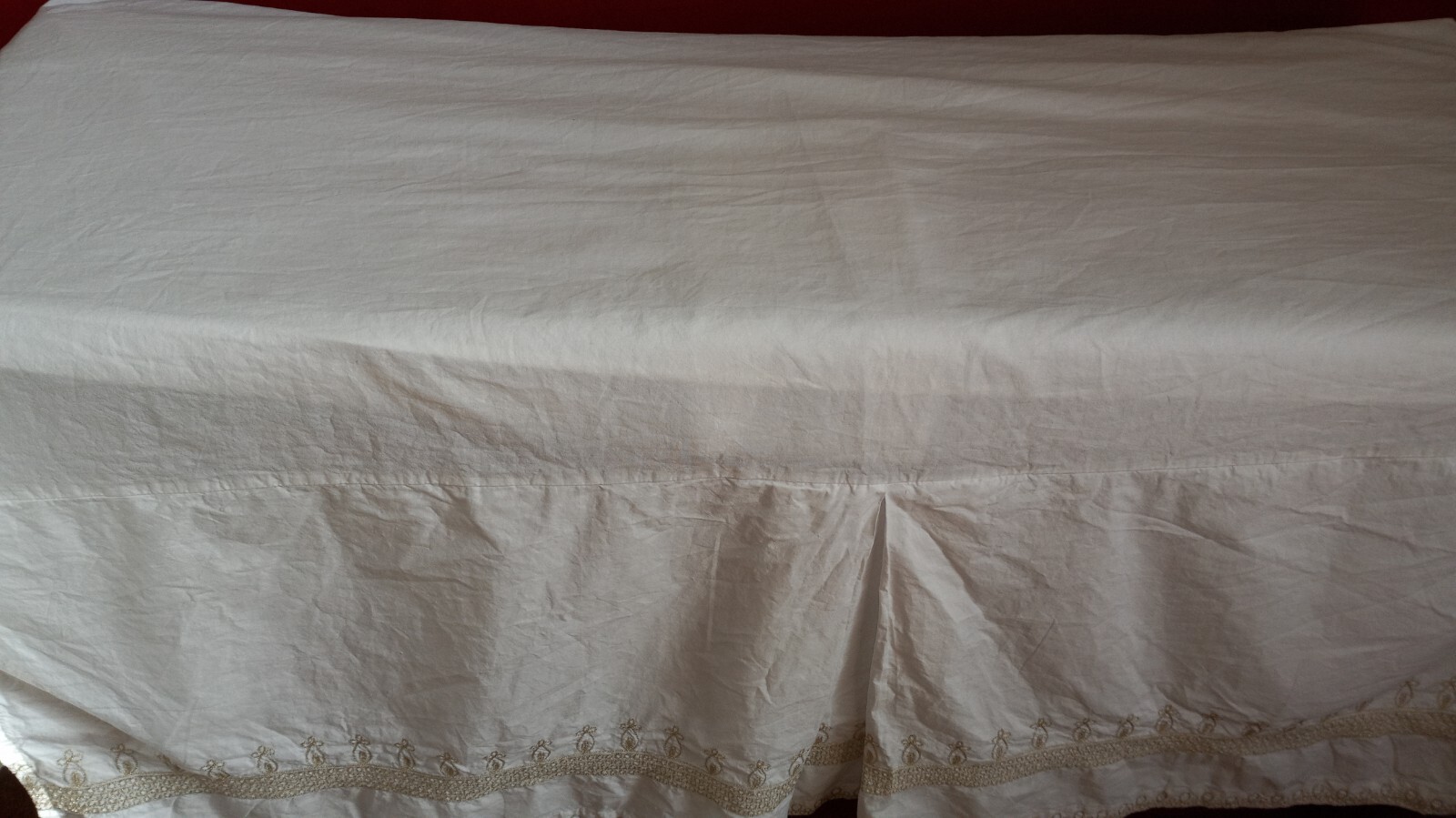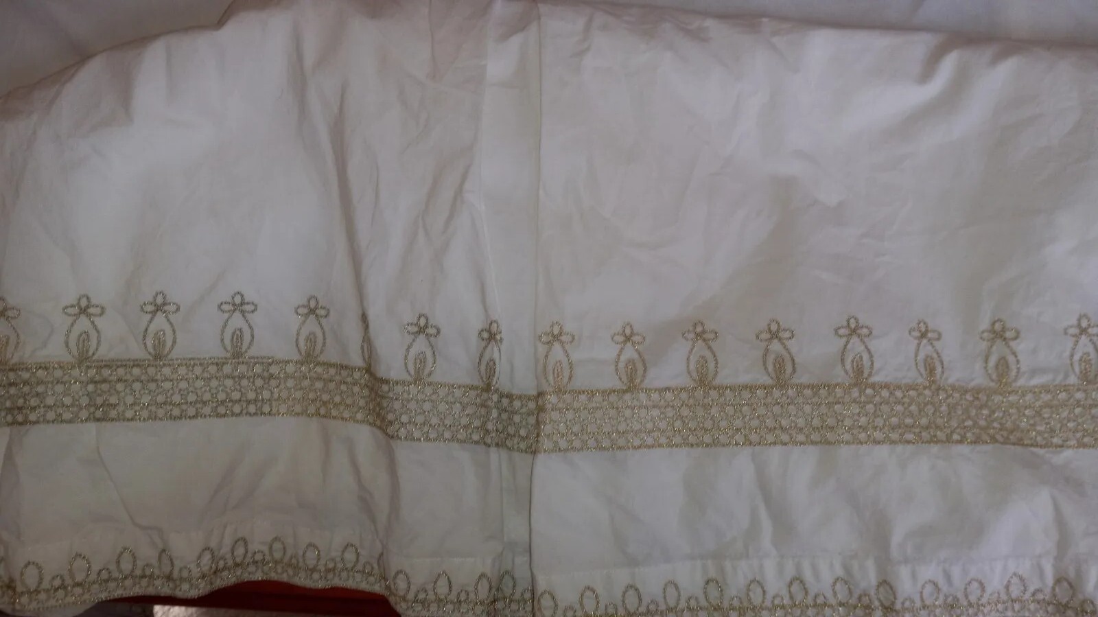 Pottery Barn Kids Crib Skirt, 100 Cotton, White with Decorative Gold Border