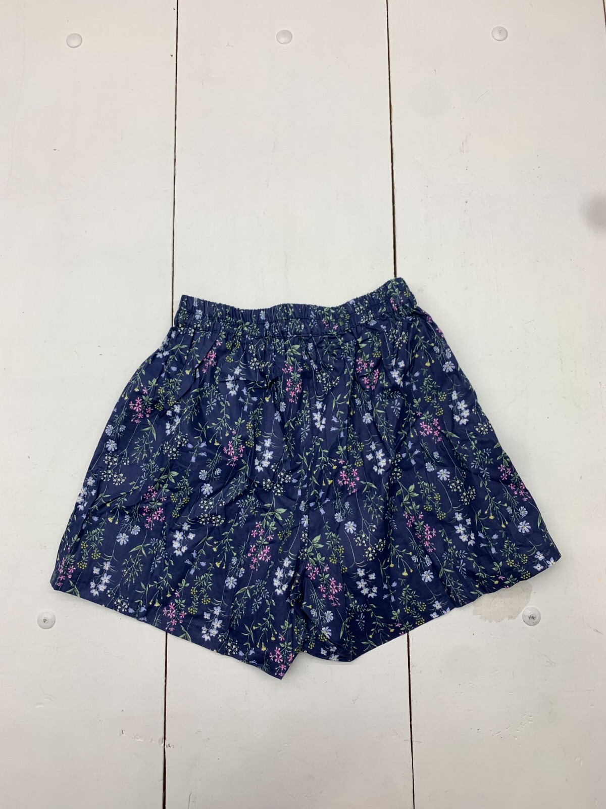 Womens Dark Blue Floral Drawstring Shorts Size Large