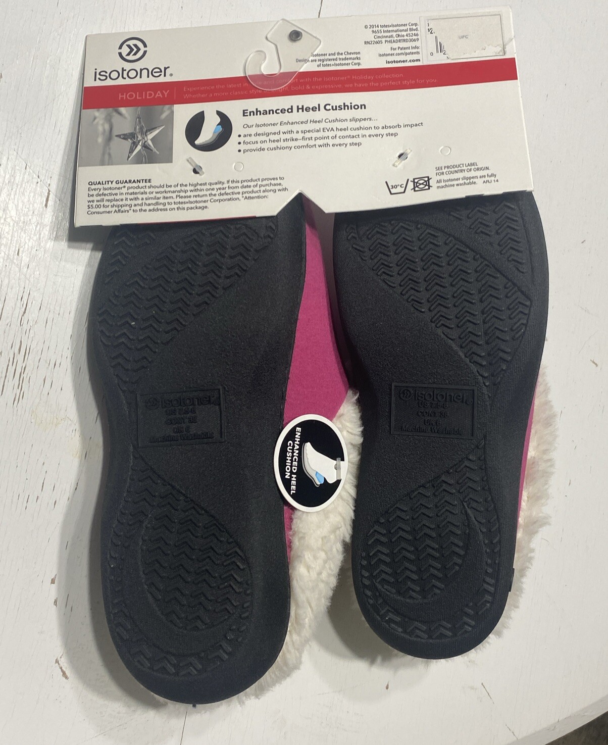 как выглядит Isotoner Women s Holiday Pink White Slippers фото