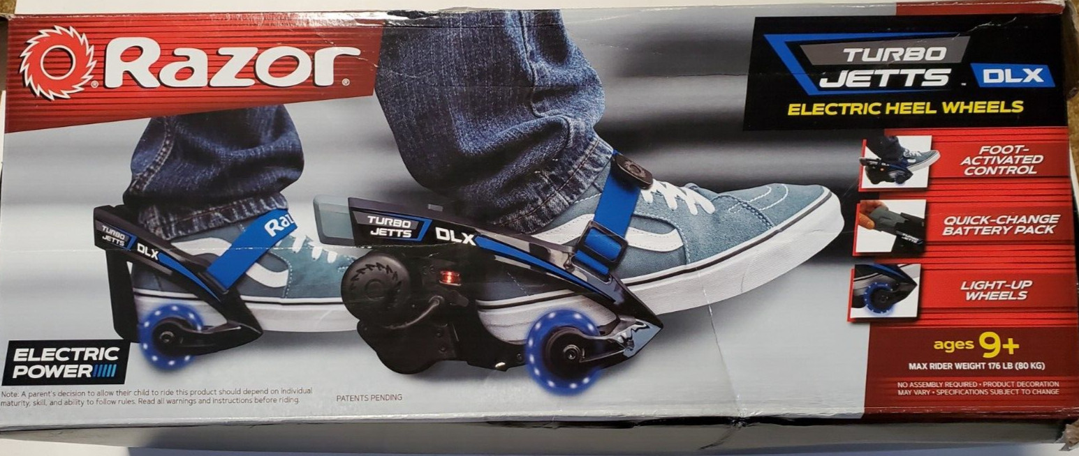 Razor Turbo Jetts Electric Heel Wheels DLX Blue with Lighted Wheels No Charger