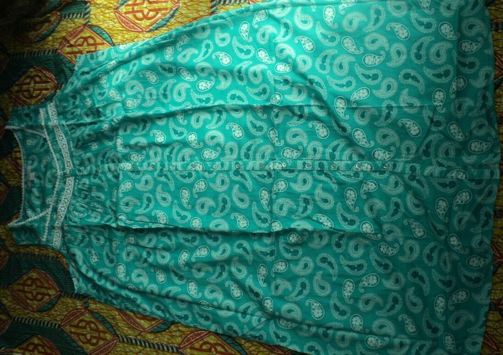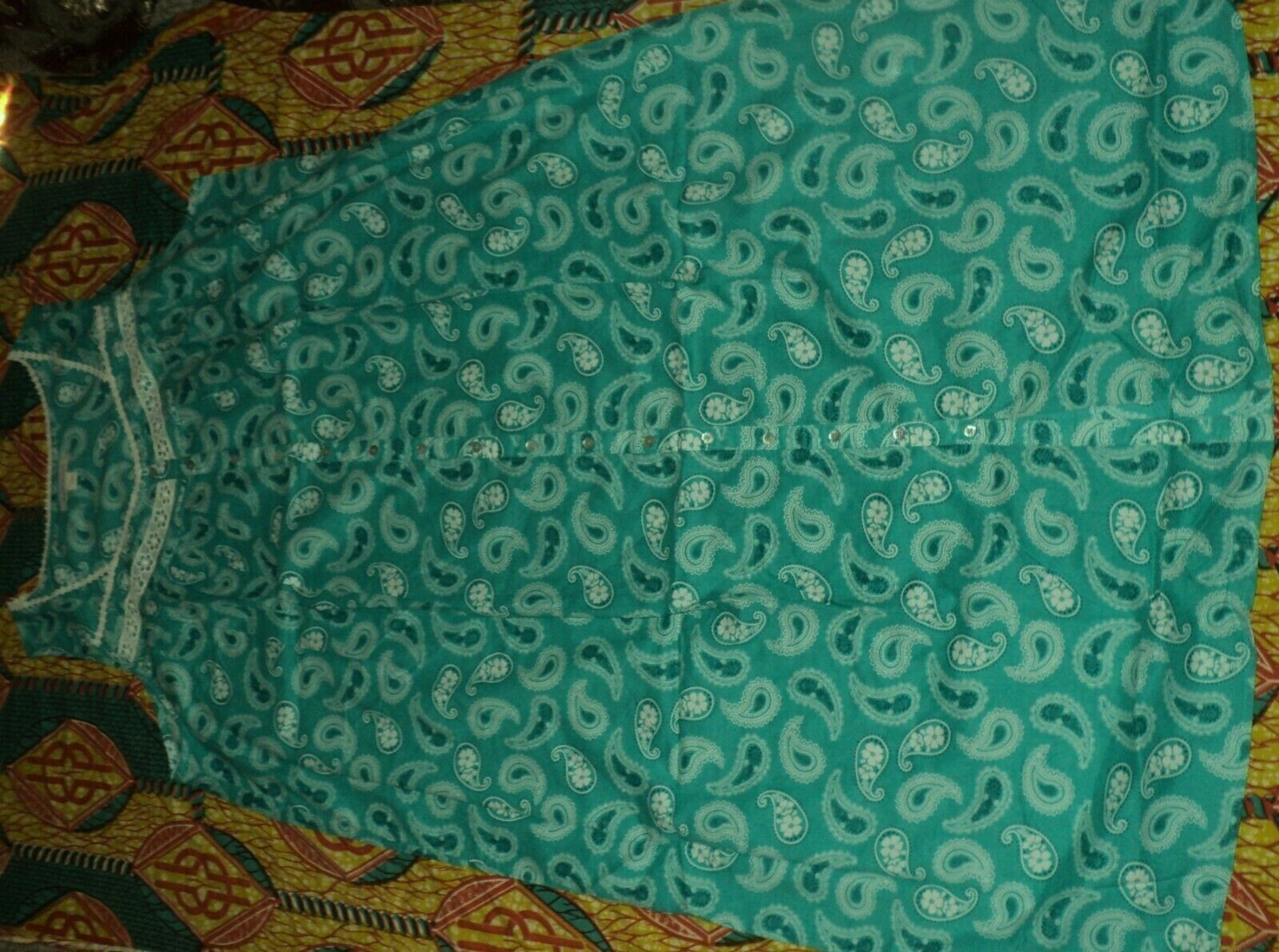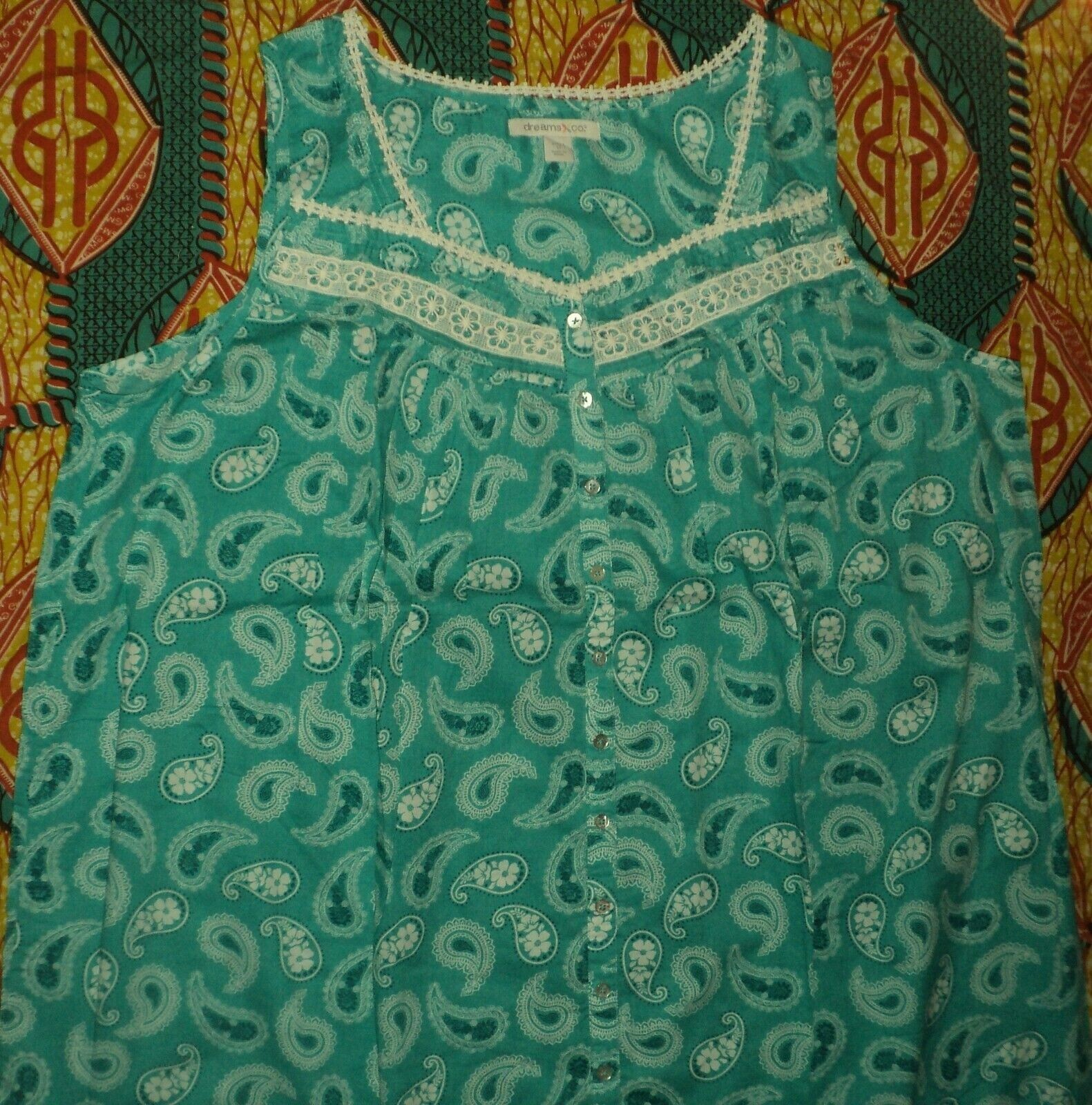 как выглядит Dreams Co Plus Size Aquamarine Paisley Long Sleeveless Floral Nightgown Sz 5X фото