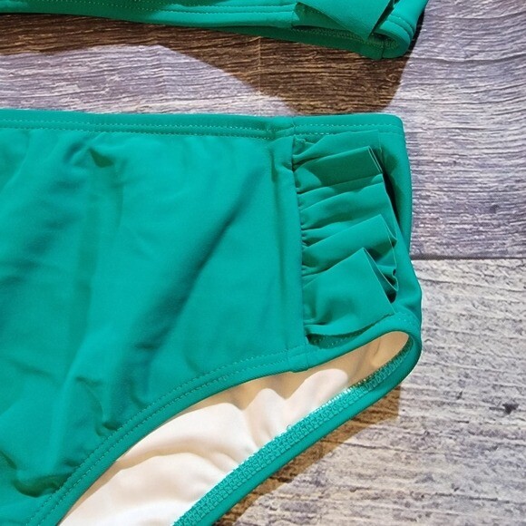как выглядит Teal 2 piece bikini with ruffle edge large фото