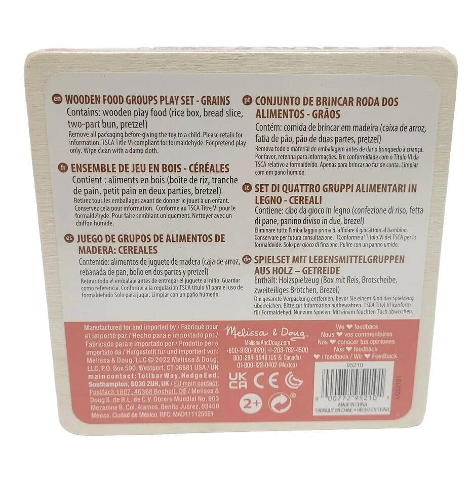 Melissa Doug Kids Food Groups Wooden Food Play Set GRAINS Rice Bread Pretzel