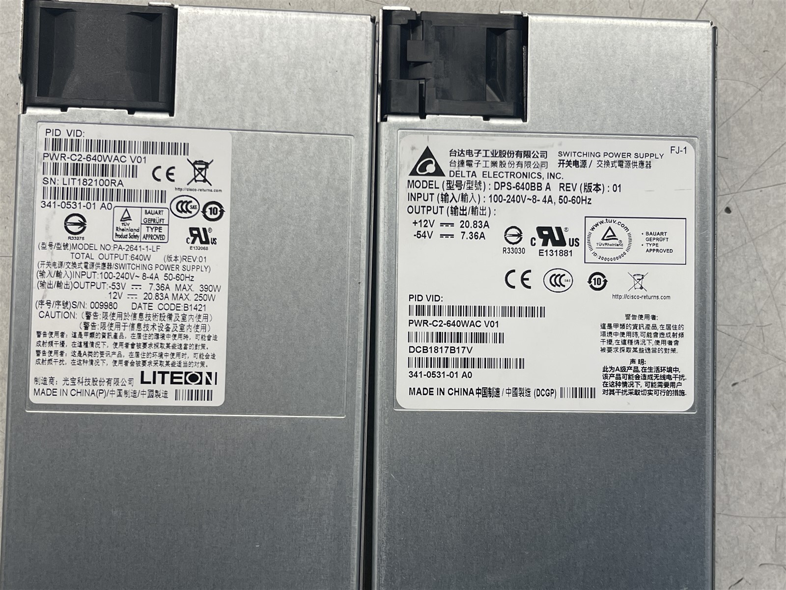 LOT OF 2 CISCO PWR-C2-640WAC 640W AC POWER SUPPLY FOR 2960-XR/3650 SWITCHES