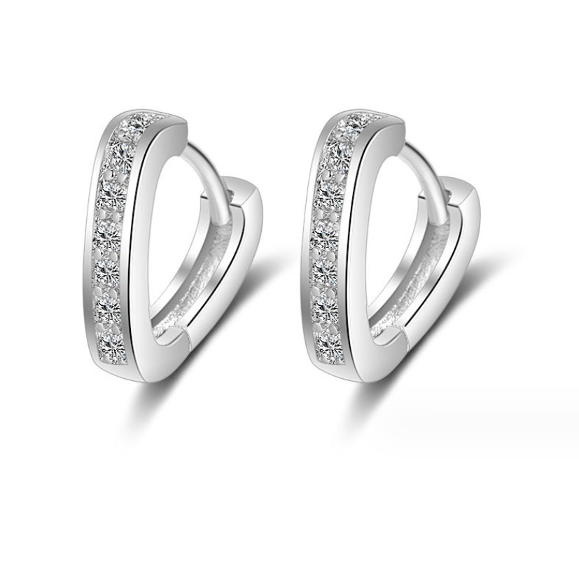 как выглядит Women 925 Sterling Silver Plated CZ Heart Huggie Hoop 15mm/10mm Earrings PE62 фото