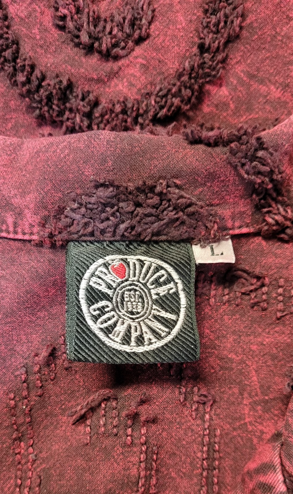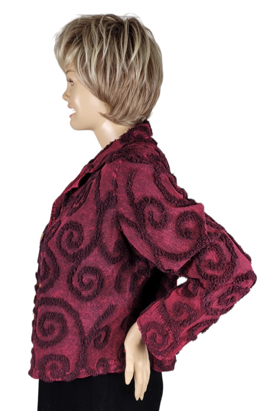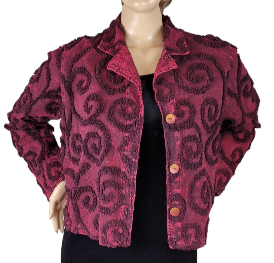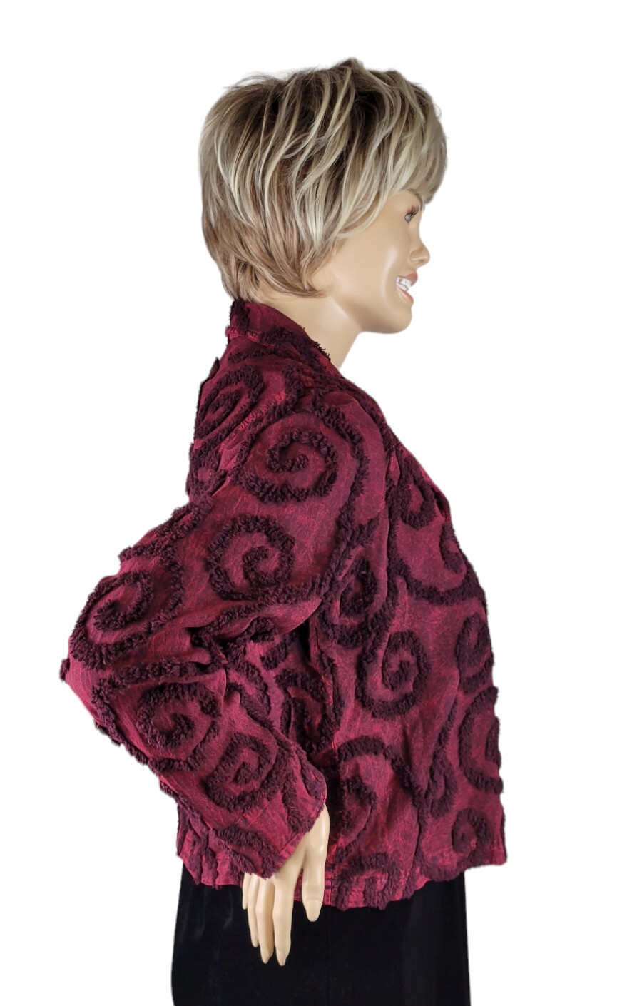 Vtg Produce Company Red Overdye Chenille Swirl Long Sleeve Button Jacket Boho L
