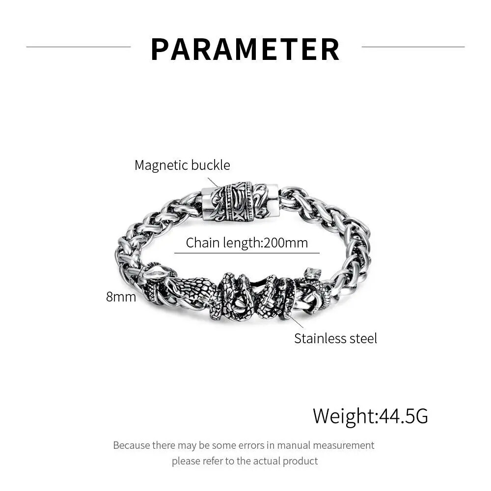 8mm Men's Hiphop 8inch Stainless Steel Magnetic Buckle Snake Link Bracelet Chain