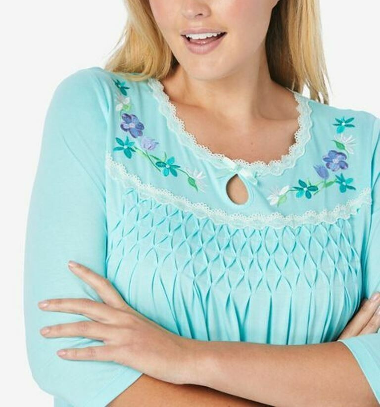 как выглядит Only Necessities Plus Size Soft Iris 3/4 Sleeves Smocked Nightgown Size 4X-34/36 фото
