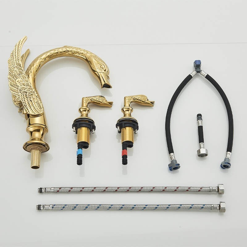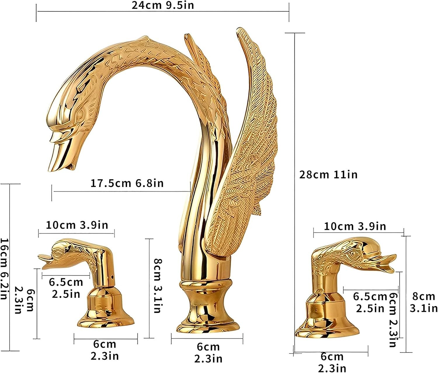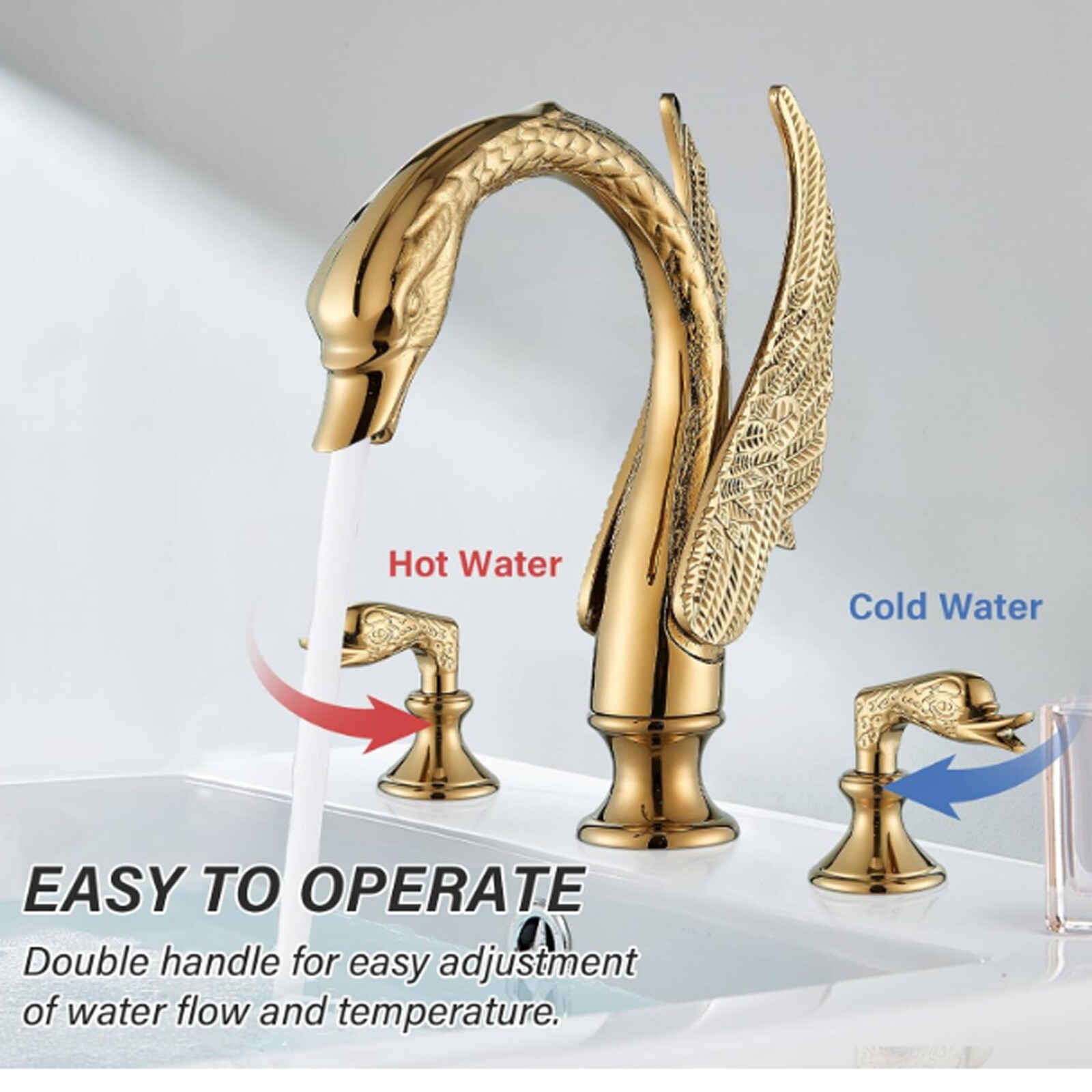 8'' Center Gold Bathroom Sink Faucet 3 Hole 2 Swan Handle Basin Vanity Mixer Tap