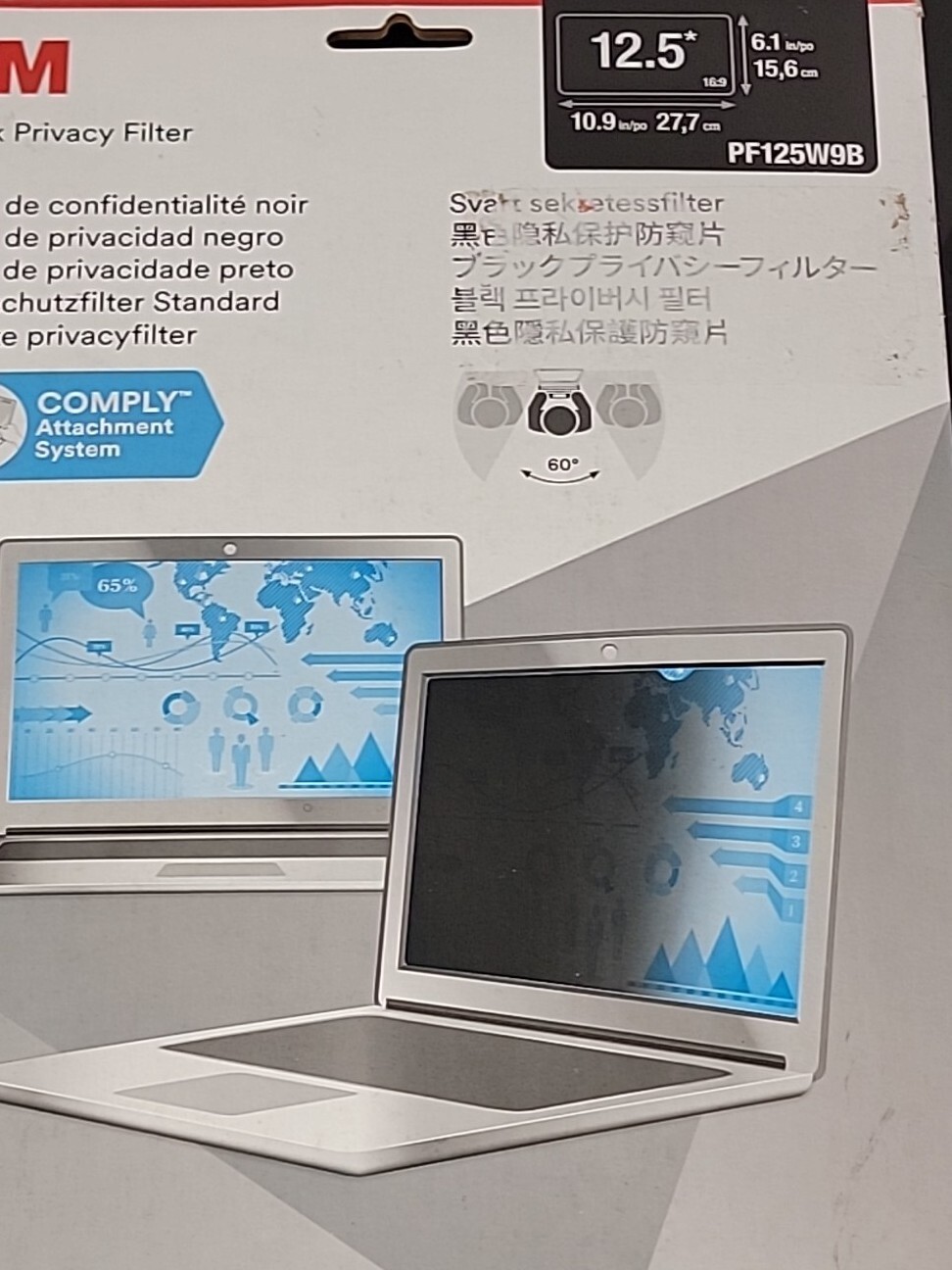 как выглядит 3M Black Privacy Screen Filter 12.5" Unframed 16:9 For Laptop Notebook PF125W9 фото
