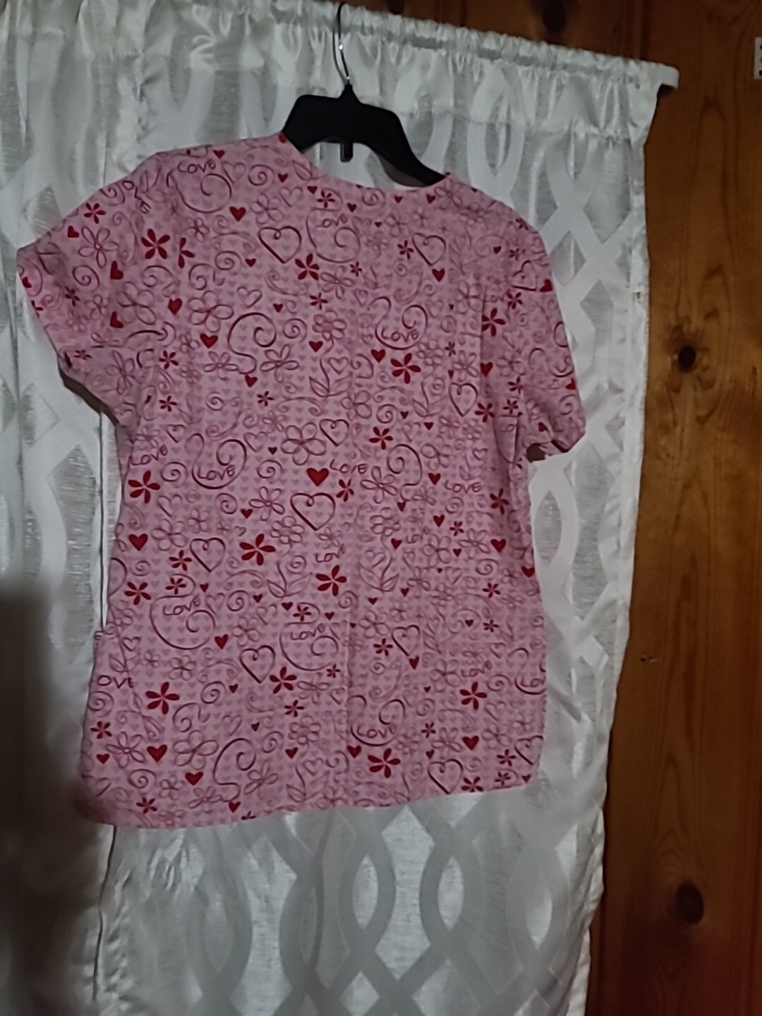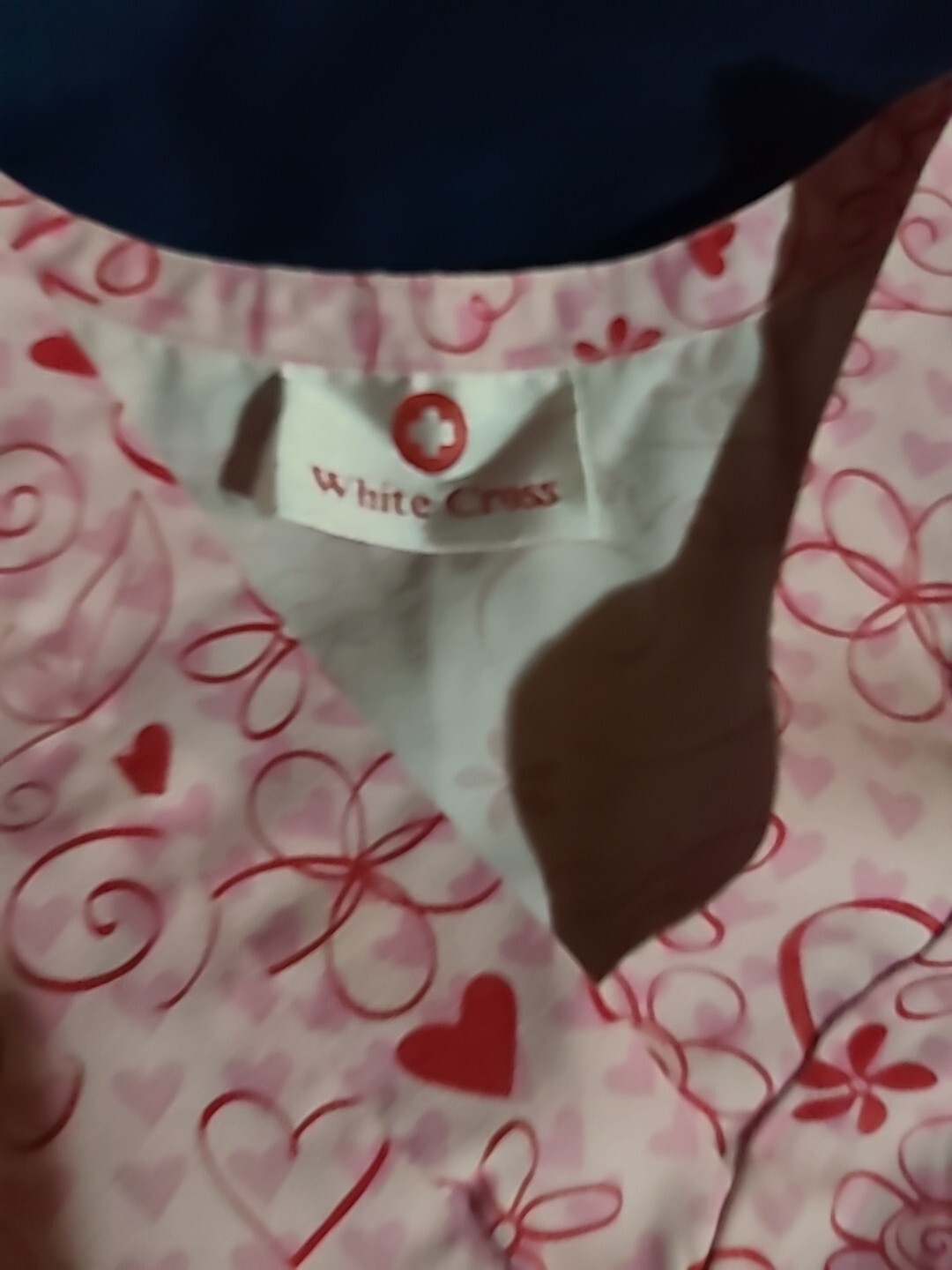 как выглядит White Cross Hearts Scrub Nursing Top Women s Size Small Valentines Day Theme фото