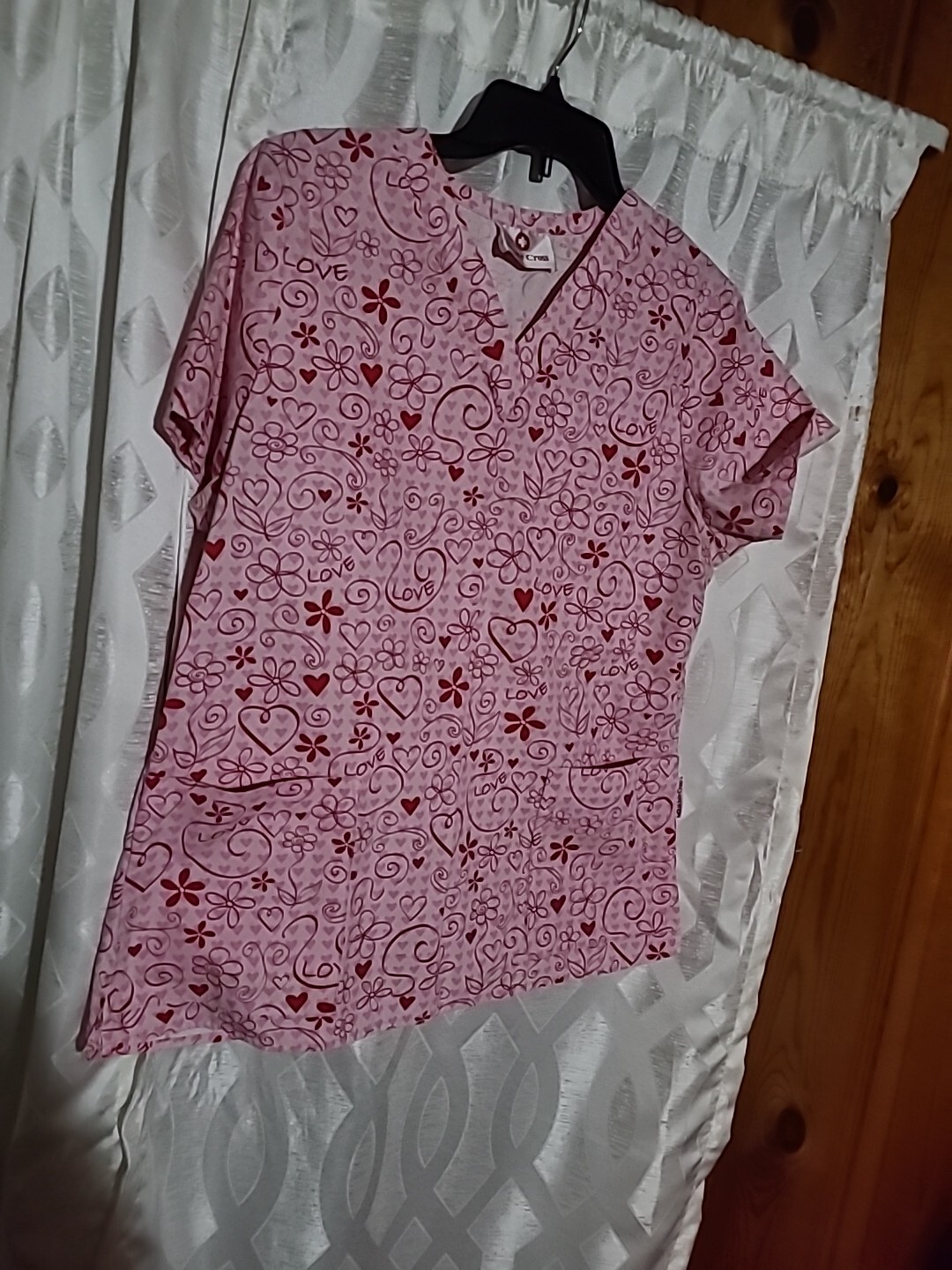 White Cross Hearts Scrub Nursing Top Women s Size Small Valentines Day Theme