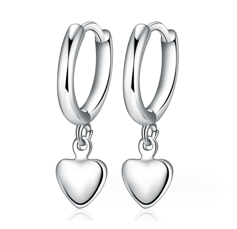 как выглядит 925 Sterling Silver Plated Dangle Heart Huggie Hoop Earrings Women Girl TH3 фото