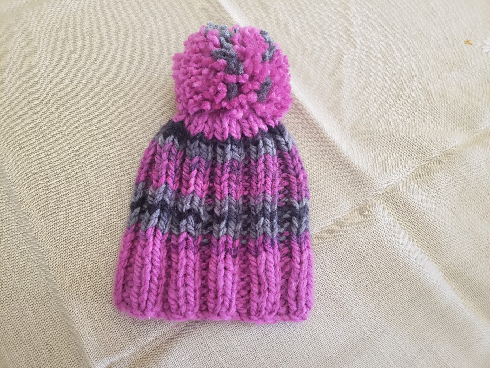 New handmade acrylic fuchsia baby hat with huge pom pom to fit 6-12m. Gift idea