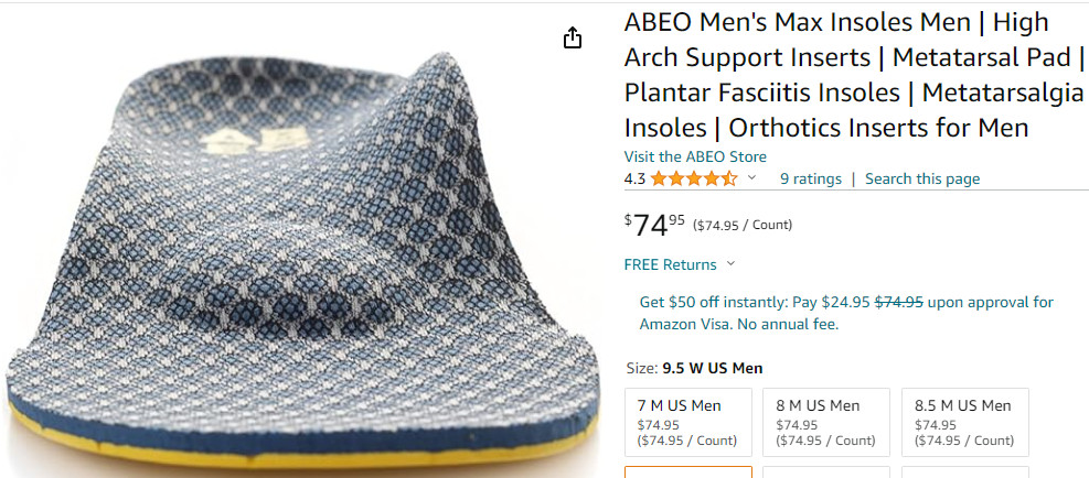 как выглядит ABEO Mens 3D3 Max Performance Orthotics Metatarsal Neutral Post Arch Plantar NIB фото