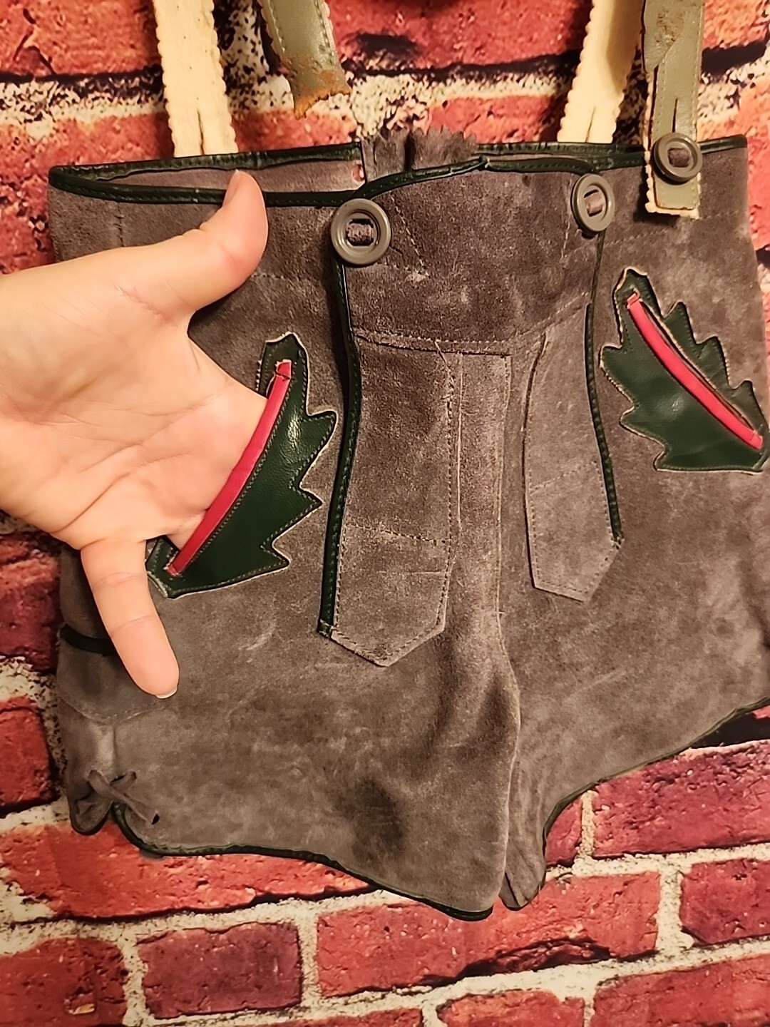 как выглядит Bavarian German Childrens Lederhosen Gray Suede Leather Shorts C52 фото