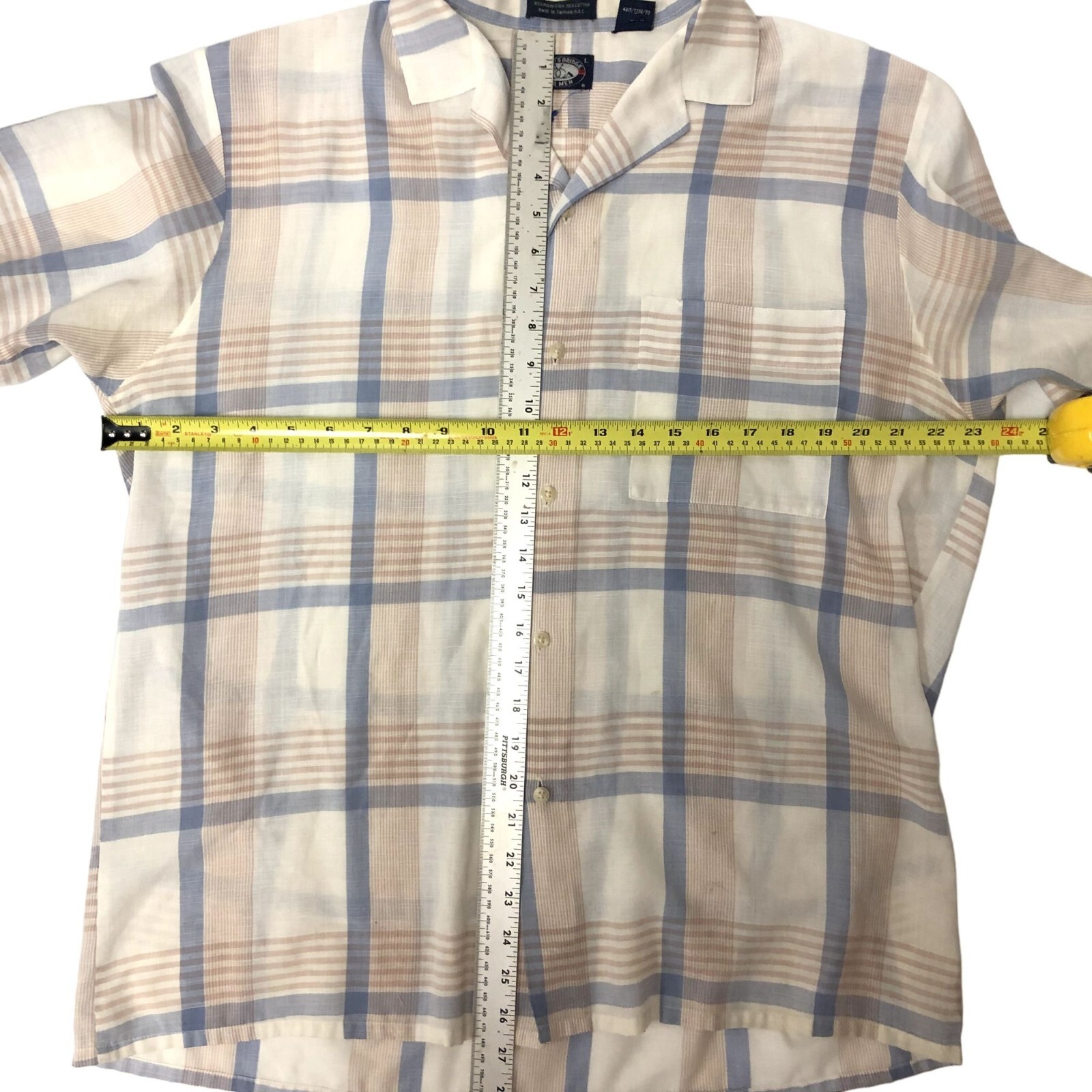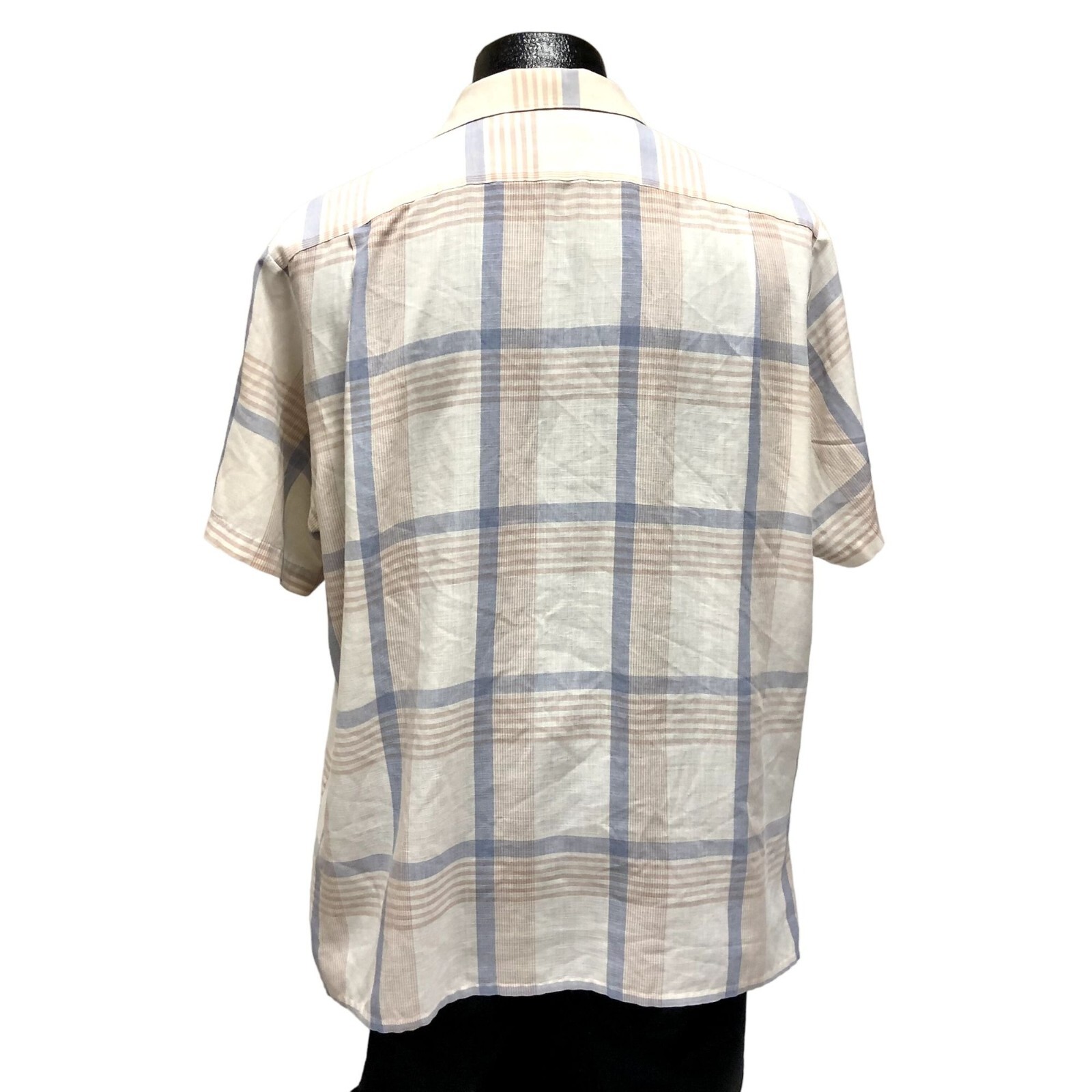 Vtg 80's Knights Bridge Men White Blue SHADOW PLAID MoD SURFER Ultra Thin Shirt