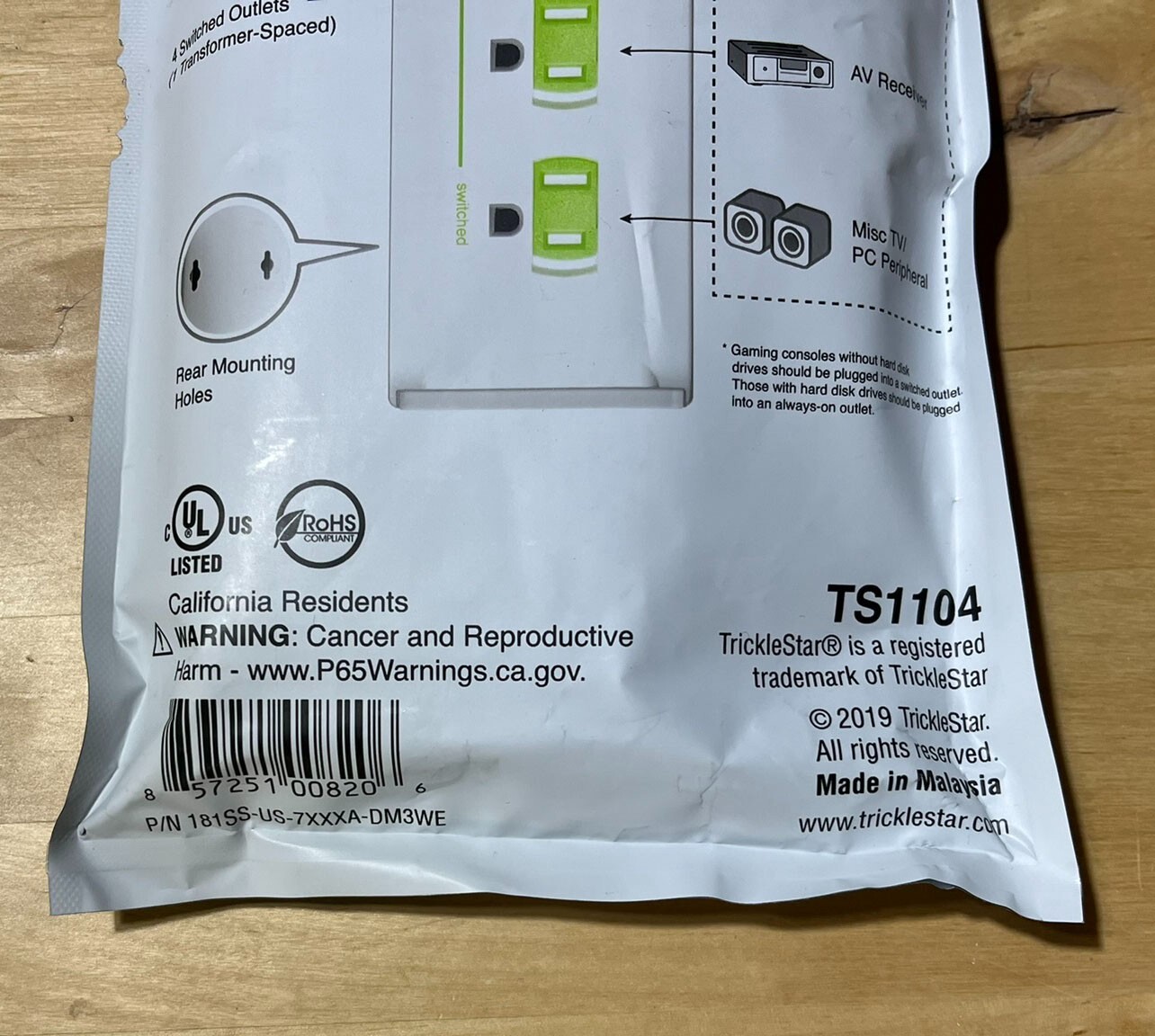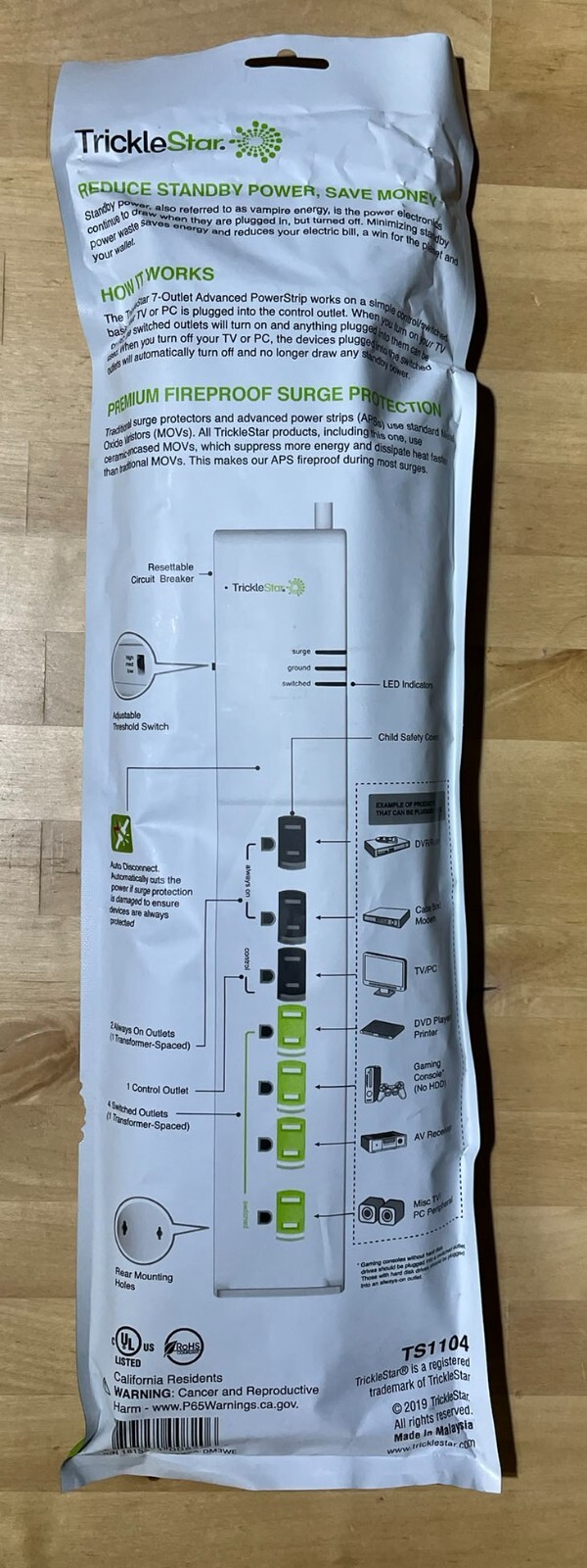как выглядит TrickleStar TS1104 7 Outlet APS Advanced Power Strip Surge Protector White, New фото