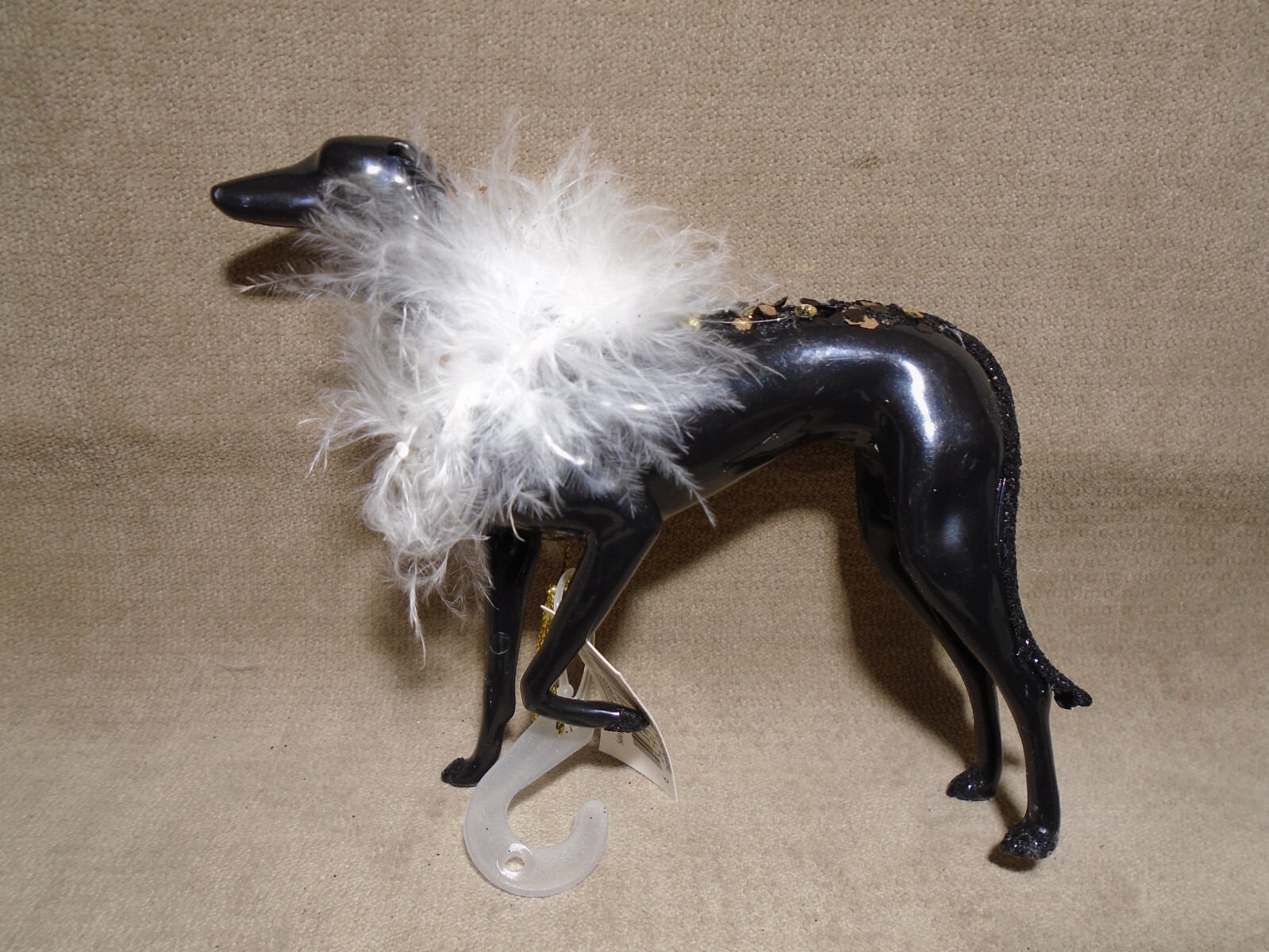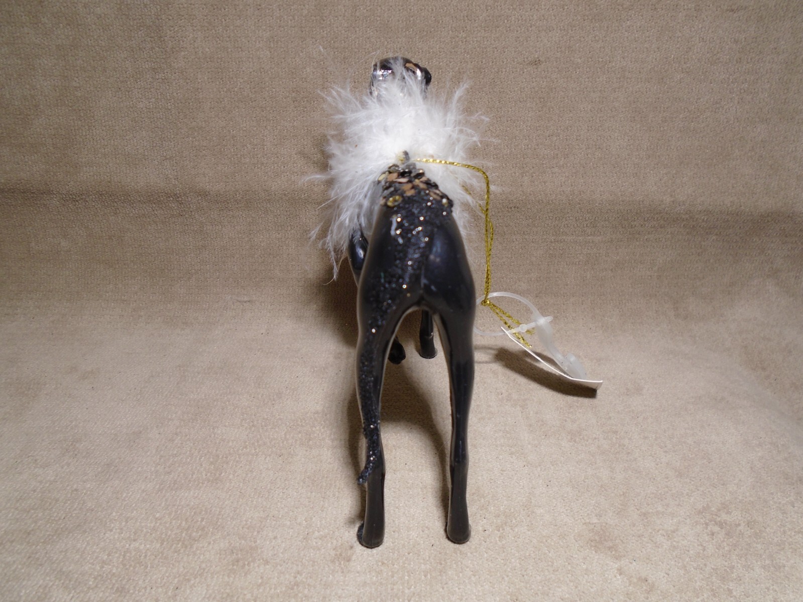 • FANCY BLACK GREYHOUND WHIPPET PLASTIC 3.5 X 4.5 ORNAMENT HOLIDAY TIME CB7130