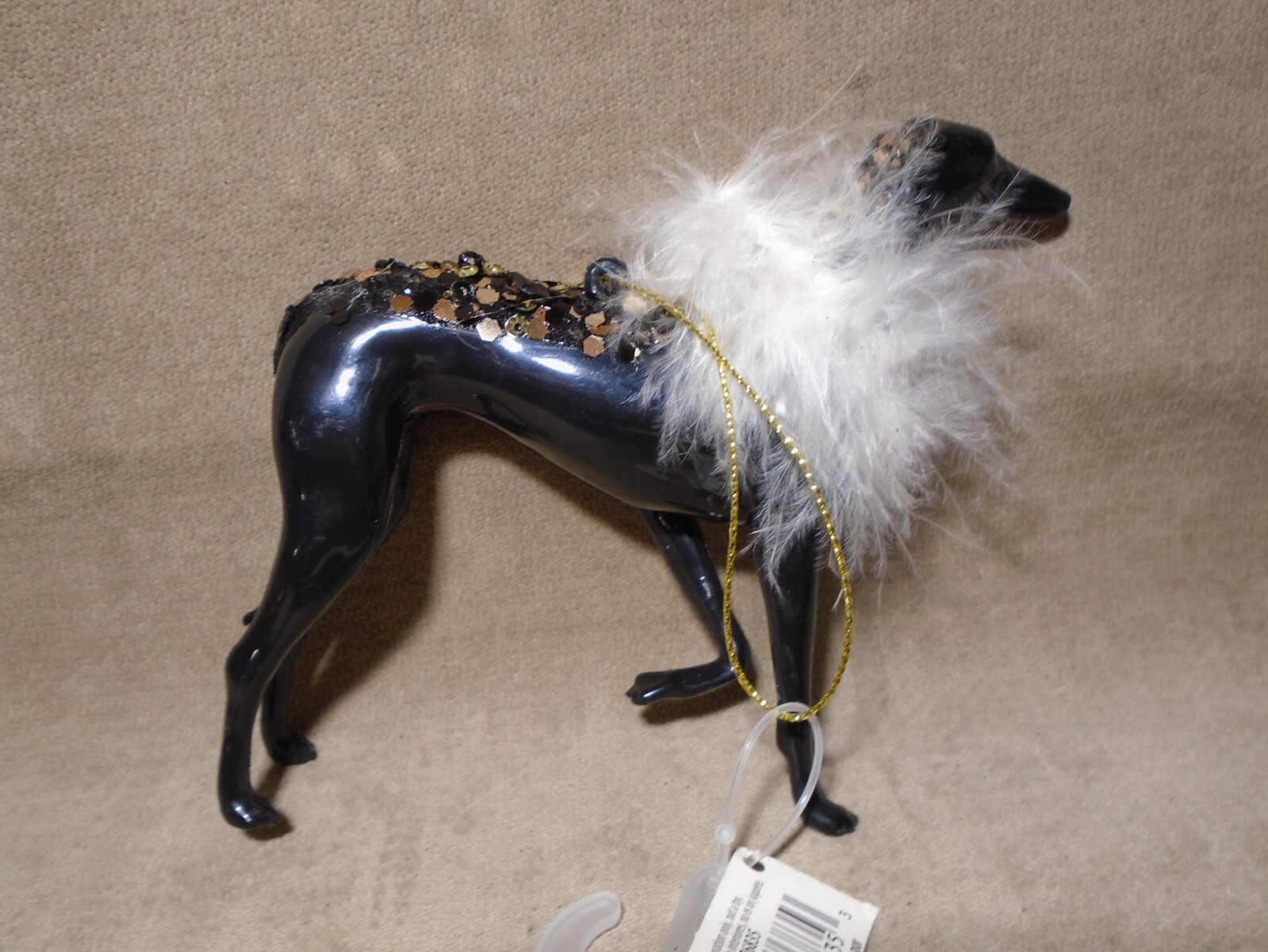 • FANCY BLACK GREYHOUND WHIPPET PLASTIC 3.5 X 4.5 ORNAMENT HOLIDAY TIME CB7133