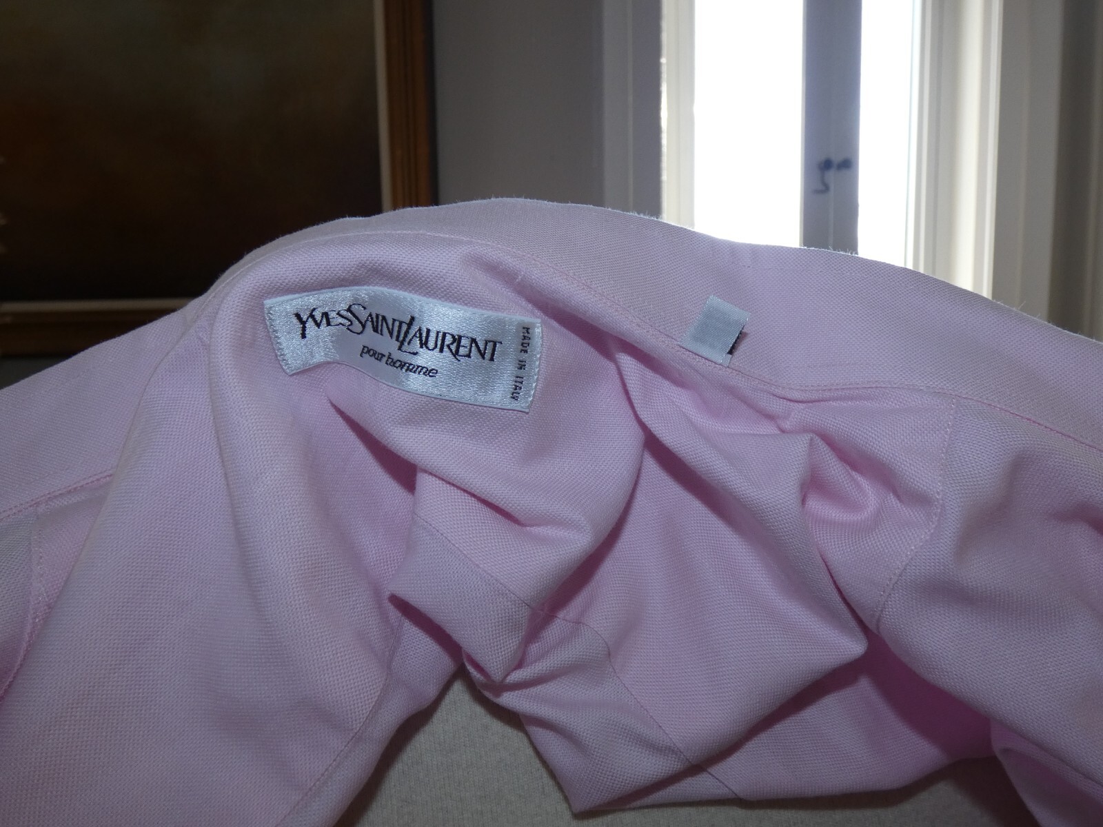 как выглядит Vintage Yves St. Laurent Mens Long-Sleeve, Button Front Shirt, Pink, 17-1/2 фото