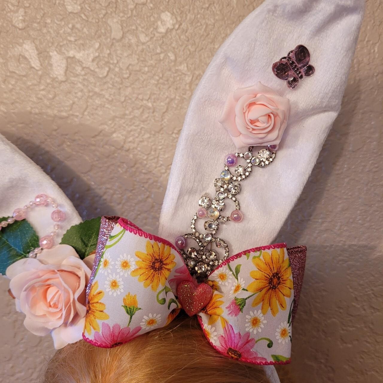 Easter bunny plush ears With Floral And Rhinestone Detail.Bunny,Furry Cosplay