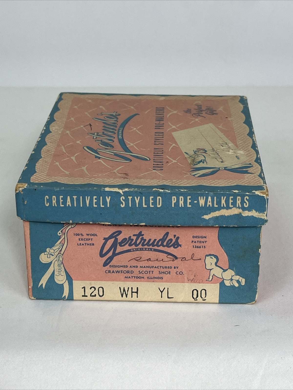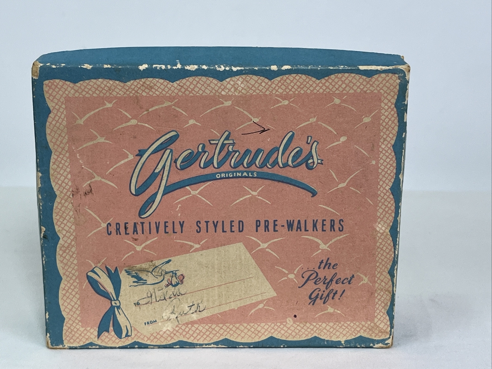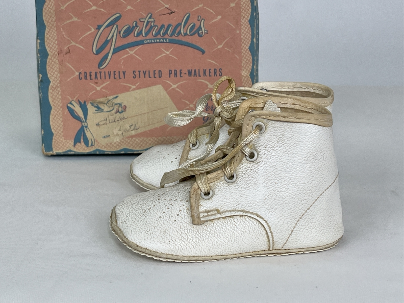 Antique White Leather Wool Baby Shoes W/ Laces Box Gertrudes Pre-Walkers