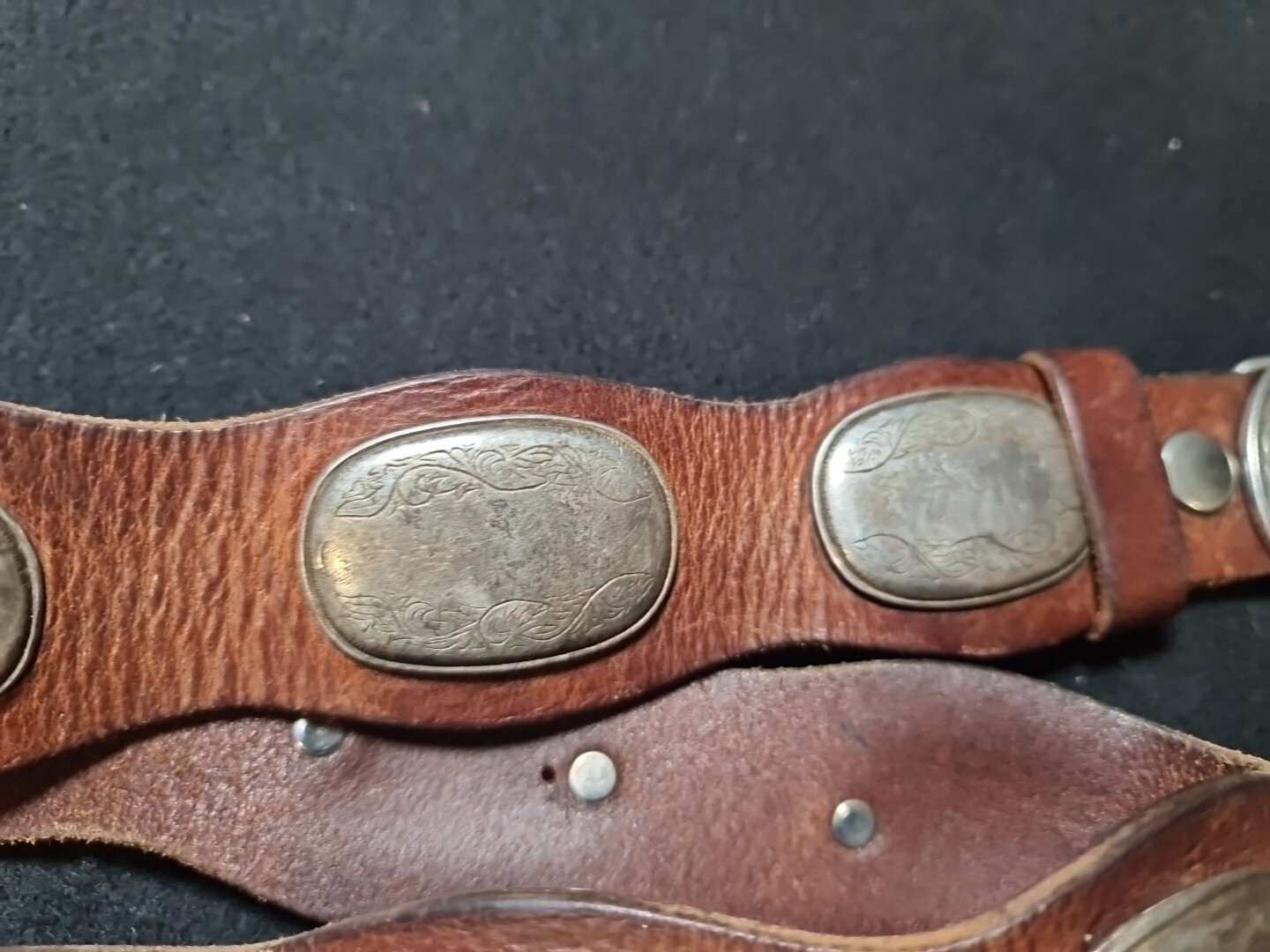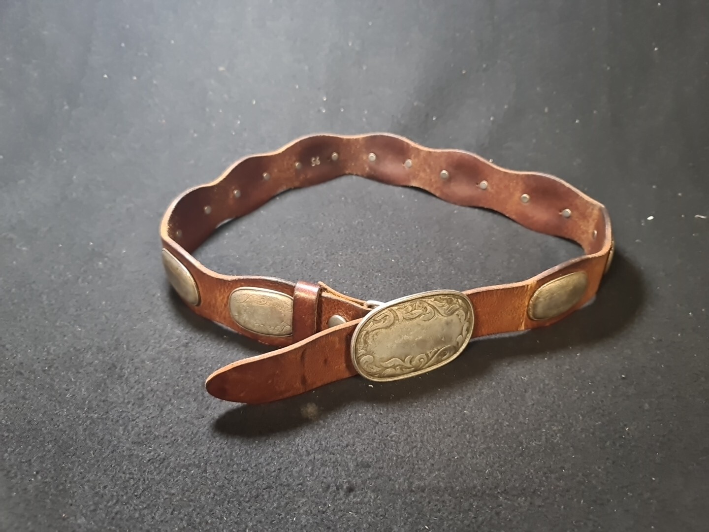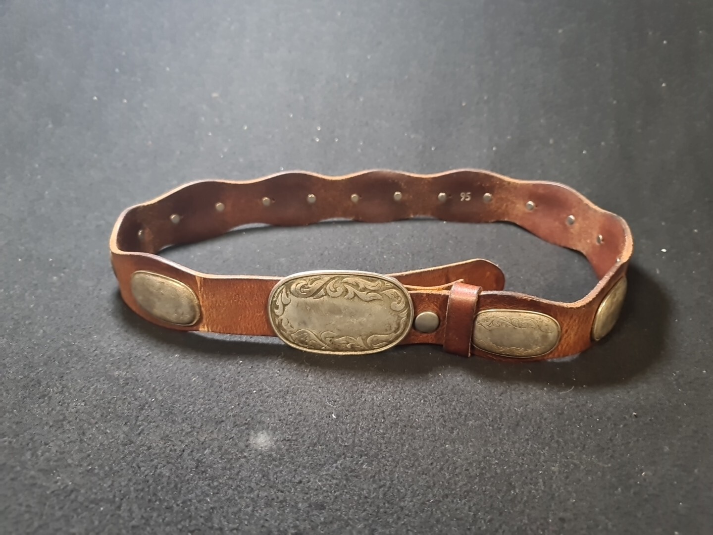 Vintage belt made of genuine leather with buckle and overlays.length 1 meter.