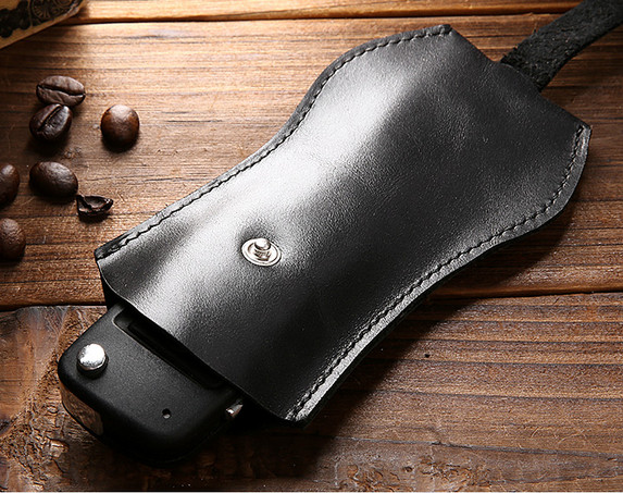 men women key case chain ring holder pocket genuine cow Leather pouch black H504