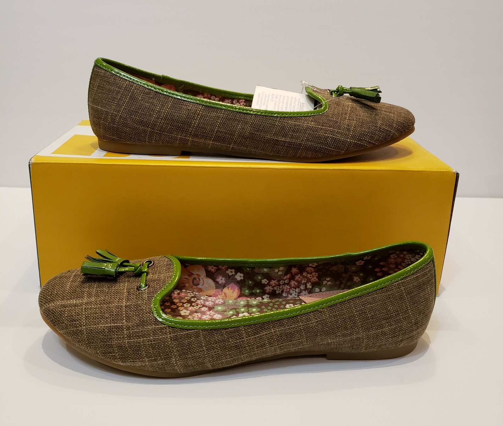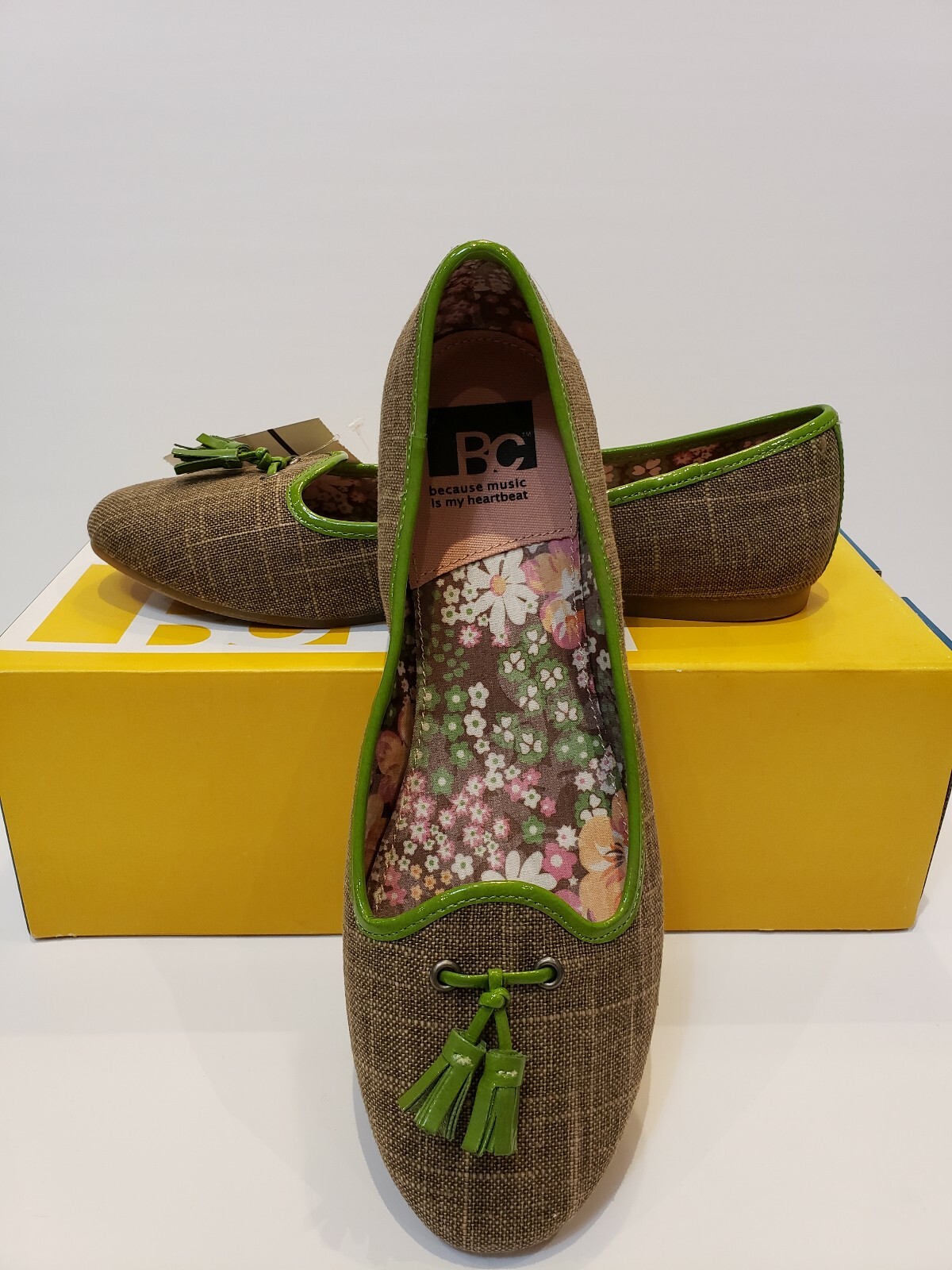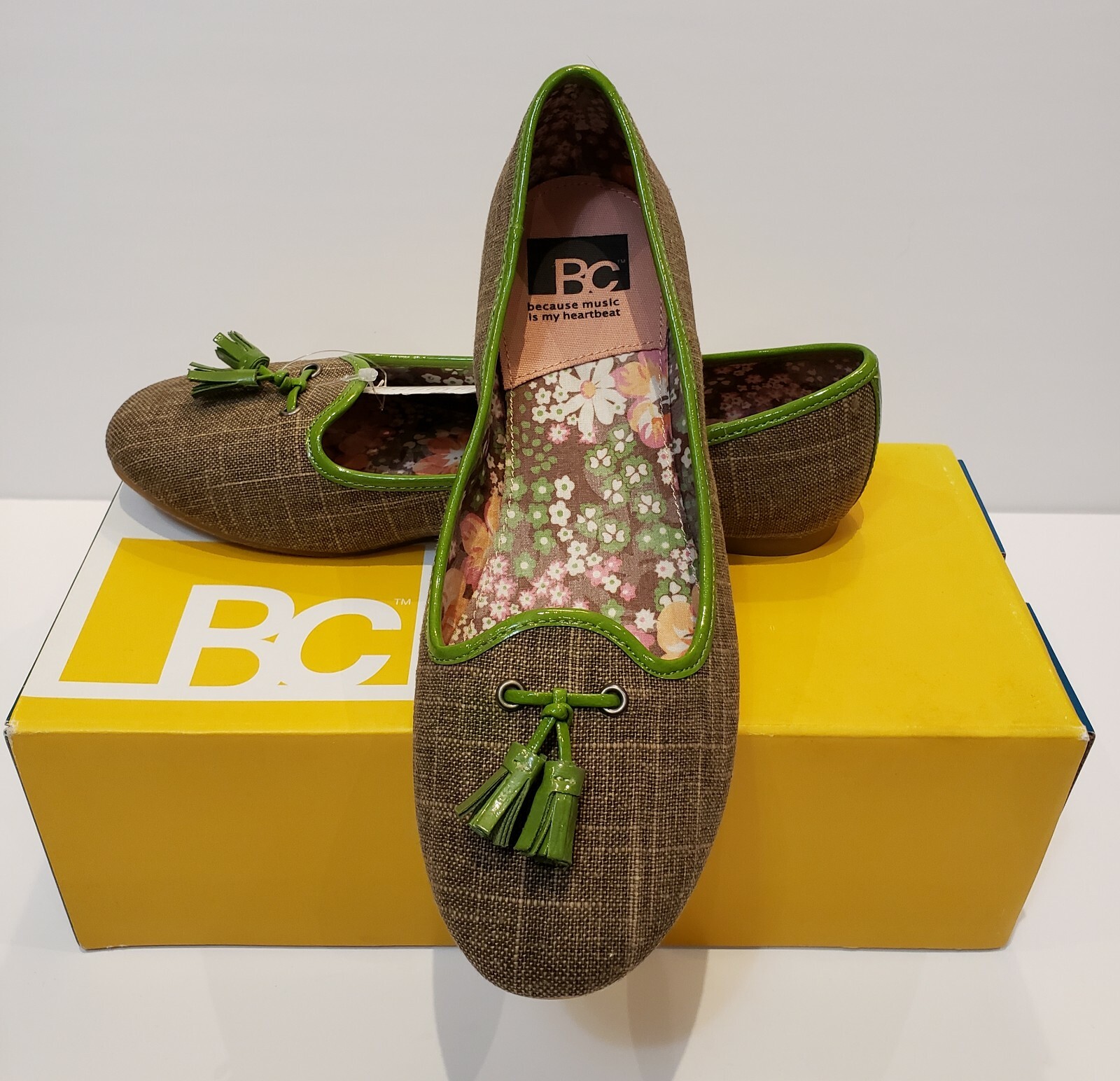 BC Because Music Is My Heartbeat Women's Burlap Slip on Tan Tassel Flats Sz 8M