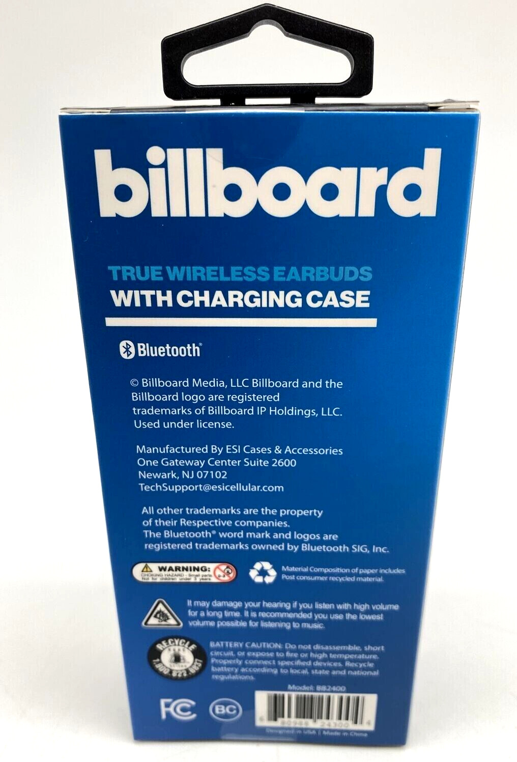 BILLBOARD Bluetooth True Wireless Earbuds w/Microphone Charging Case 8 hour play