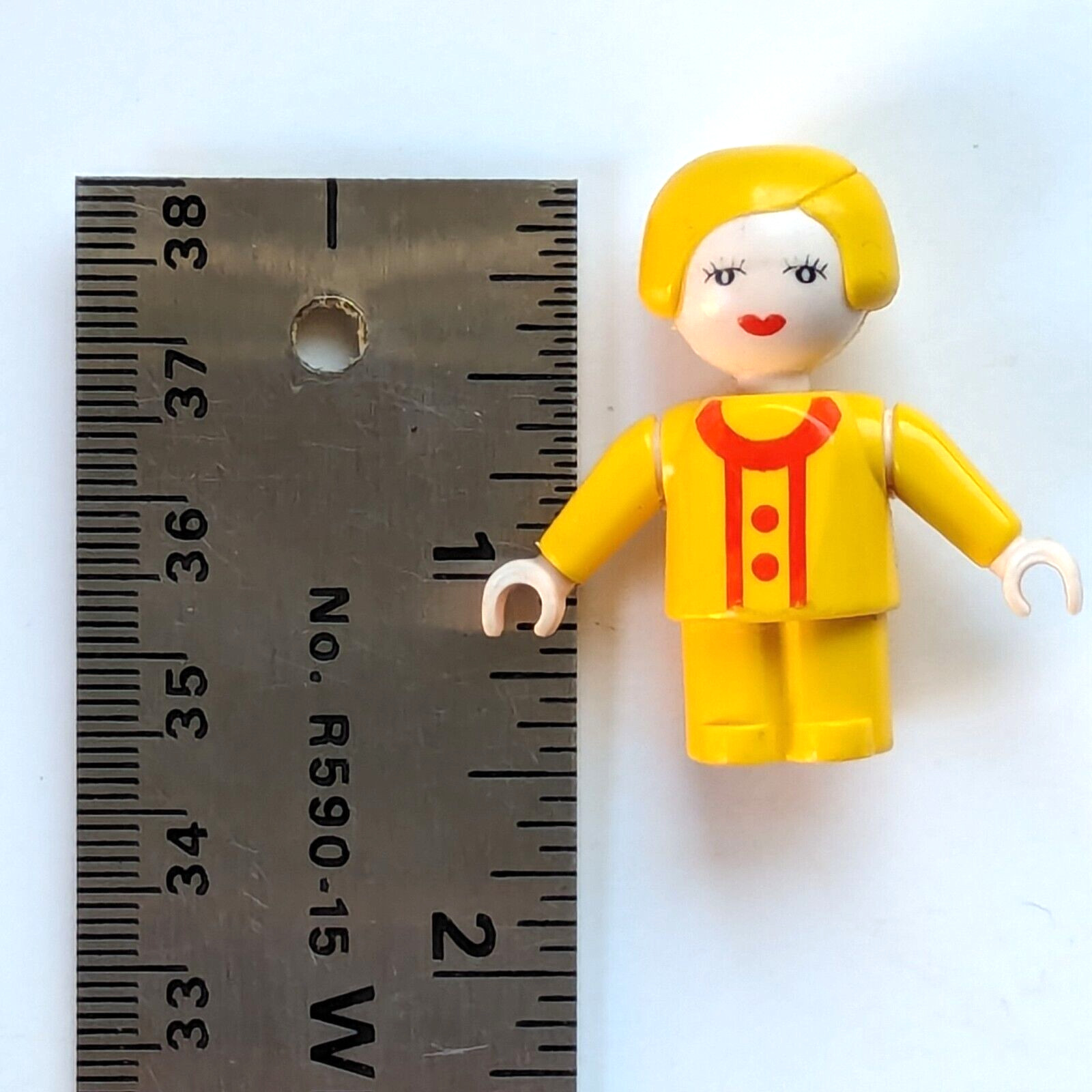 Brio Woman Figure - Rare Yellow Suit, Red Buttons, Blonde Hair, Vintage Minifig