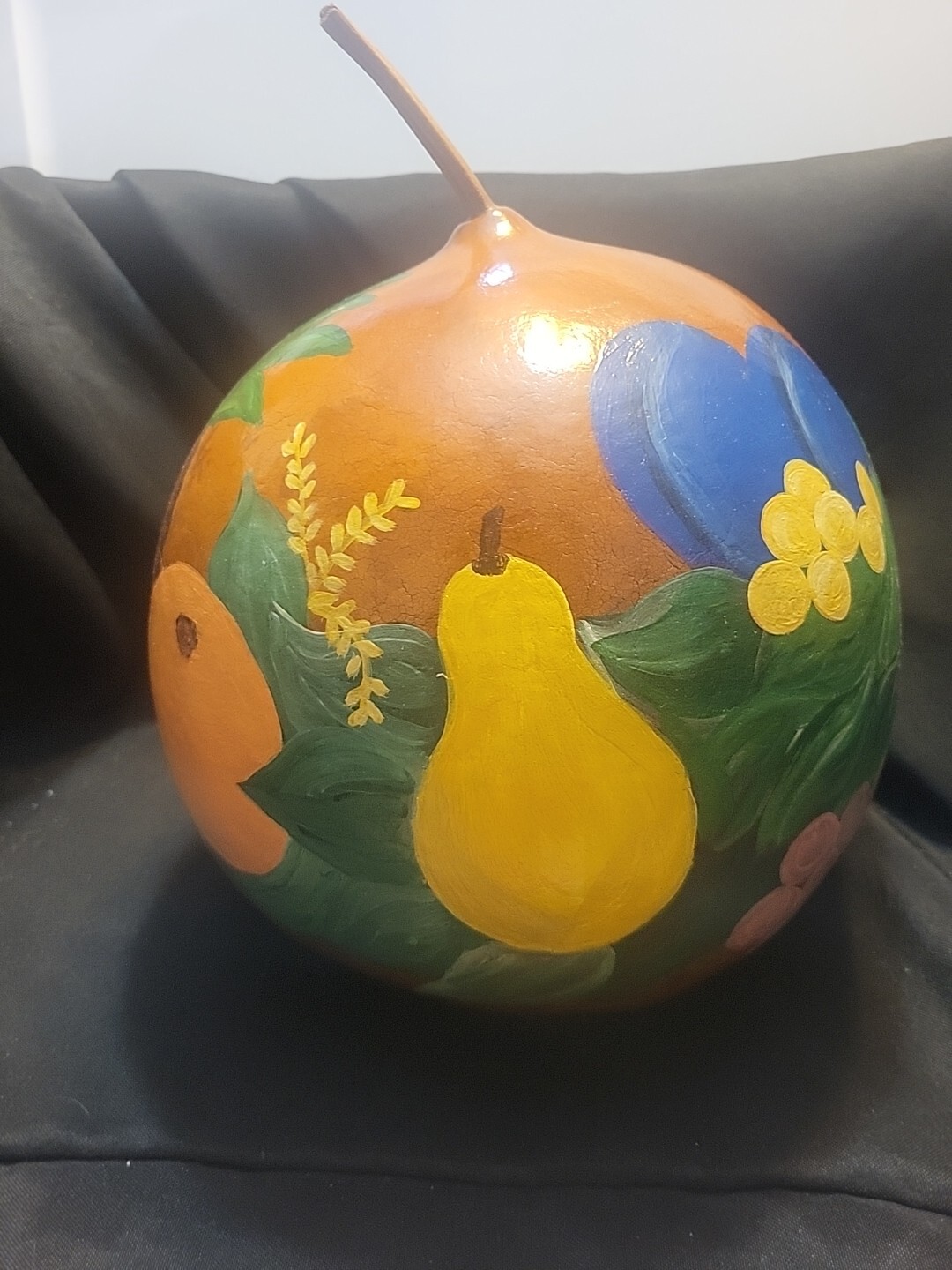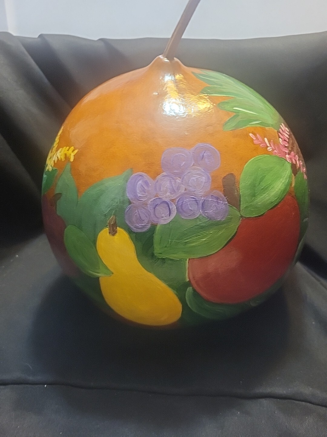 Large Gourd Painted With Fruit