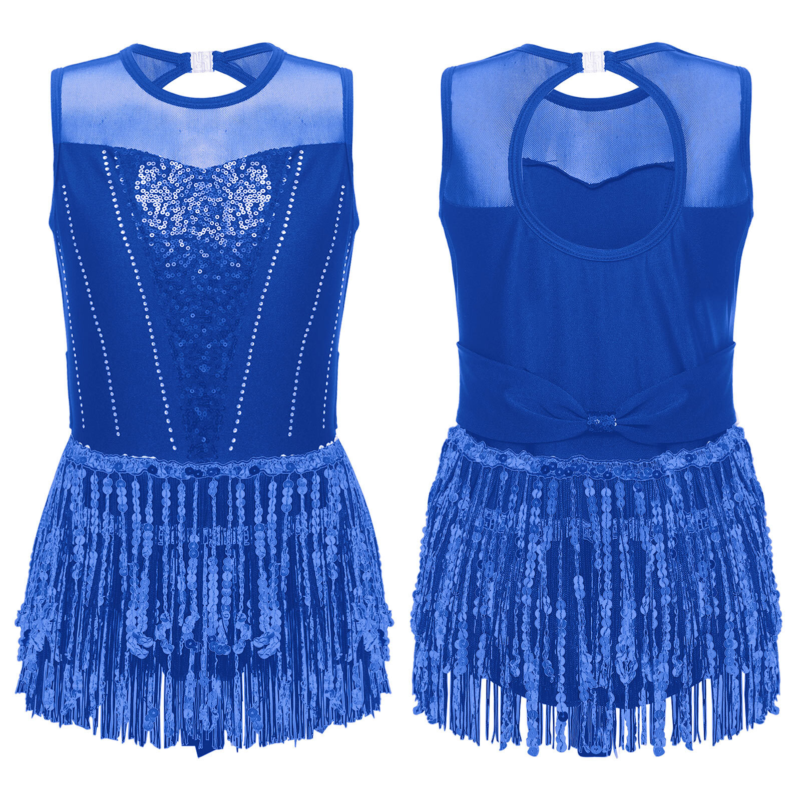 Girls Dancewear Sequins Leotard Sparkle Dress Latin Bodysuit Sleeveless Dresses
