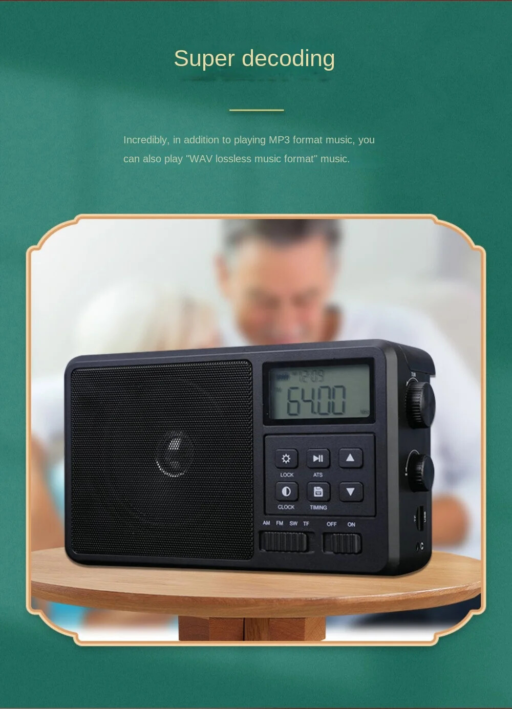 как выглядит HRD-206 Radio FM AM SW Portable Radio LCD Screen Full Band Recording Speaker фото