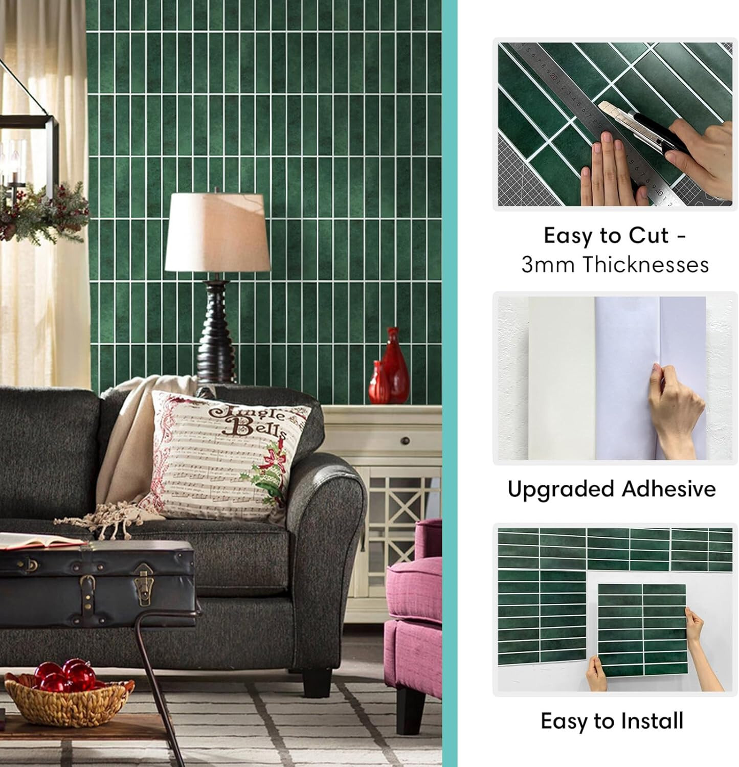 Commomy 10 Pcs Peel and Stick Tiles Backsplash-11.8X11.8 Matte Forest Green