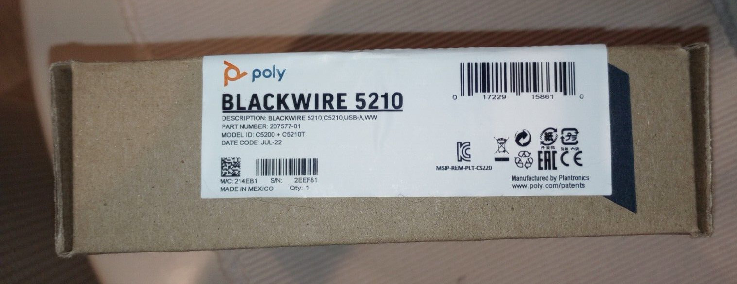 Poly Blackwire 5200 Series C5210 USB-A Mono On-Ear Headset 207577-01 NEW