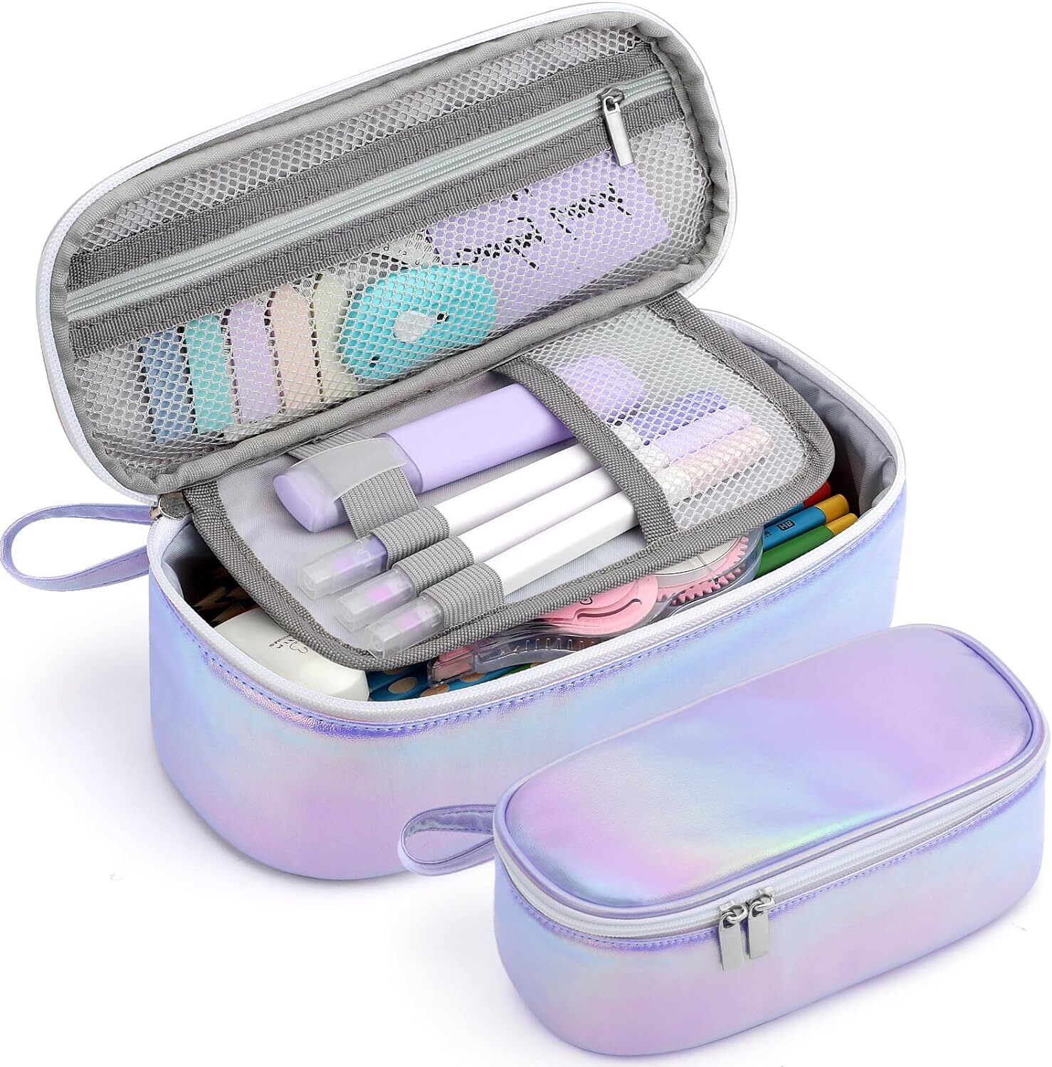 Large Capacity Pencil Case Portable Pouch Bag School Supplies Purple