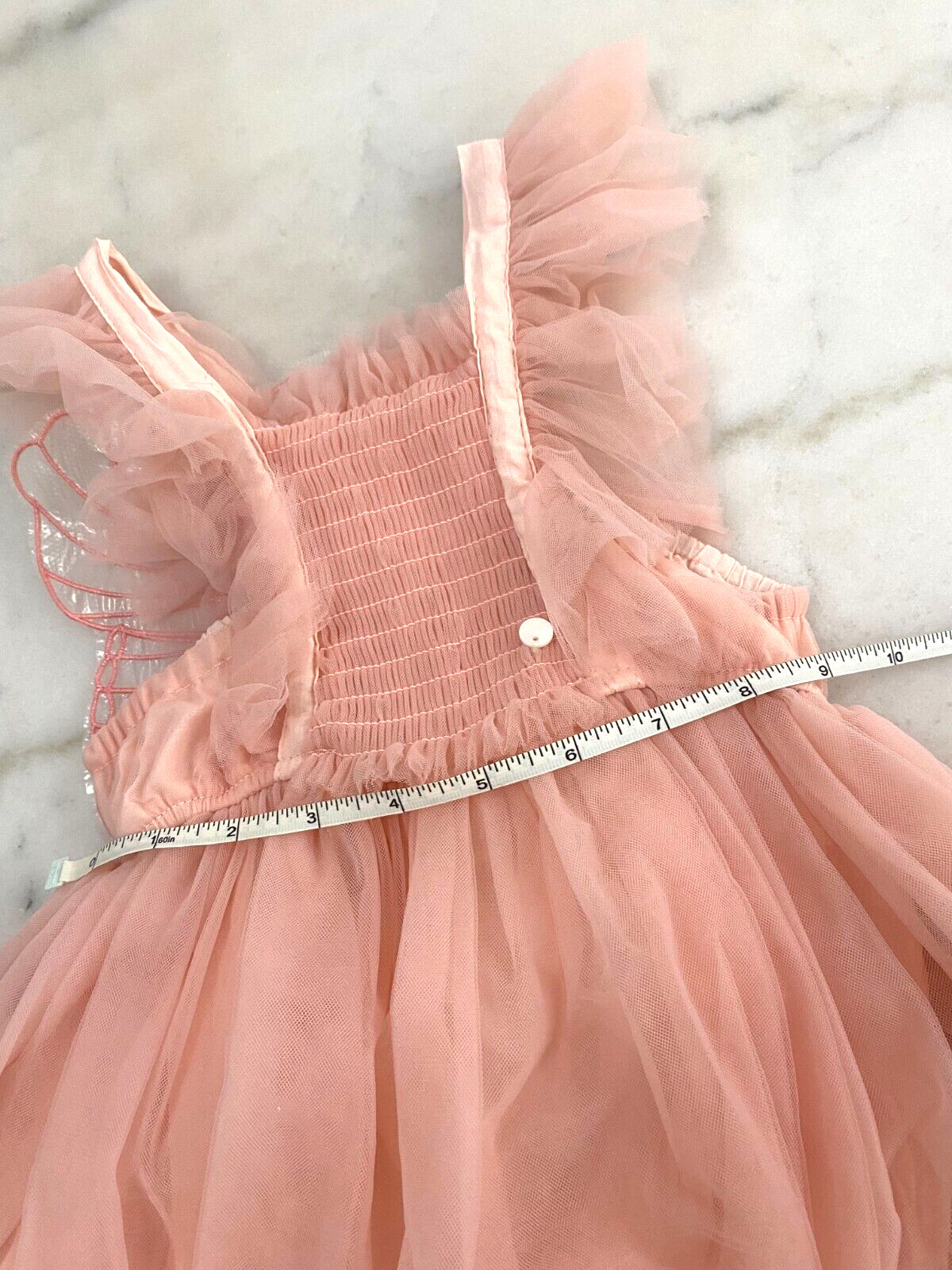 Girls Sleeveless Tutu Dress Butterfly Lace Peach Fairy Flower Girl Size 4-5