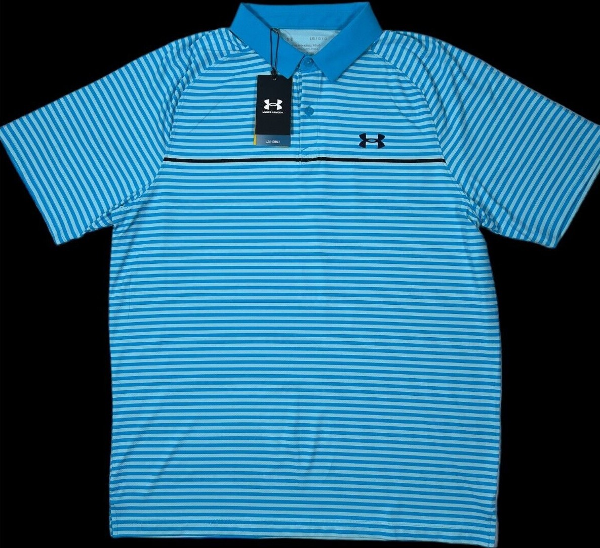 NWT Under Armour Playoff Polo Golf Collared Shirt Blue Stripe 2XL Loose