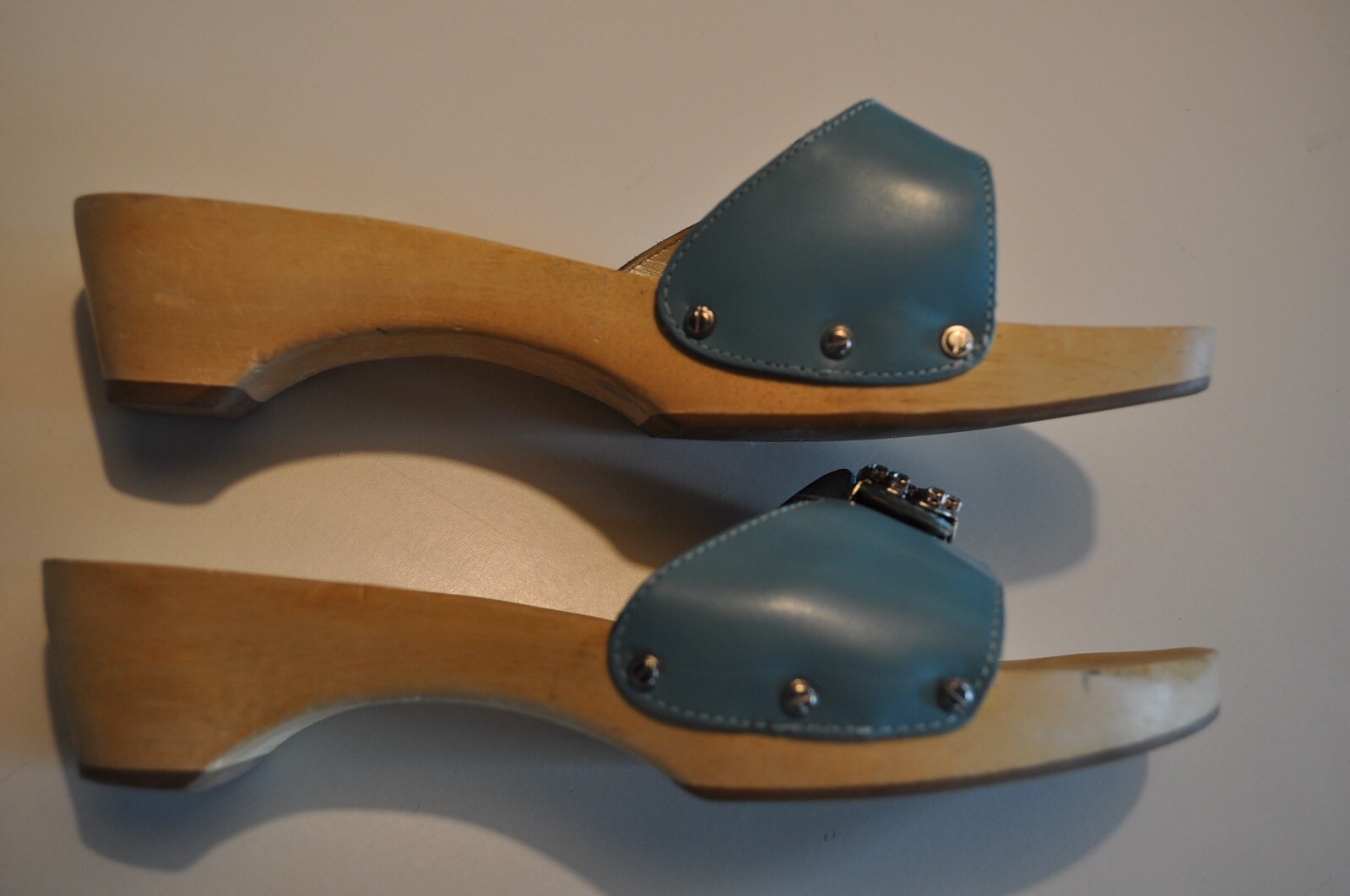 как выглядит BCBG Max Azaria Slides Blue Rhinestone Wood Size 7B фото