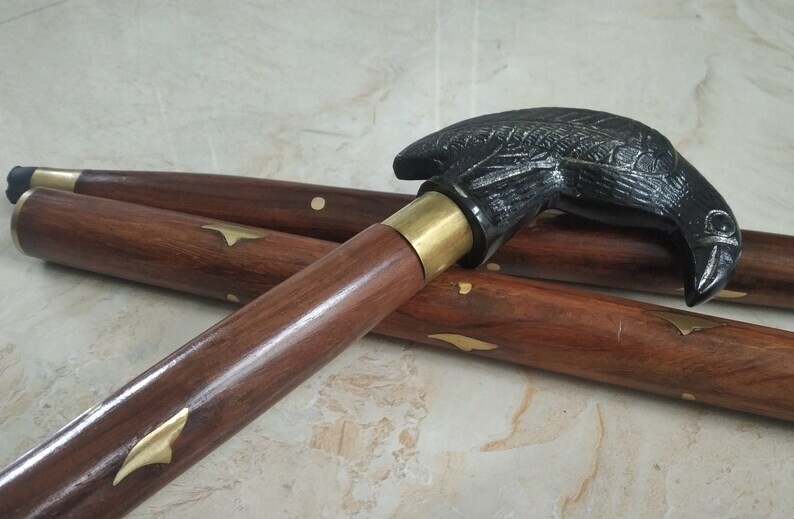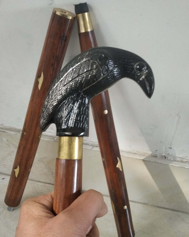 как выглядит Ravens Embrace: Antique Crow-Shaped Handle Walking Cane - Mysterious Elegance фото