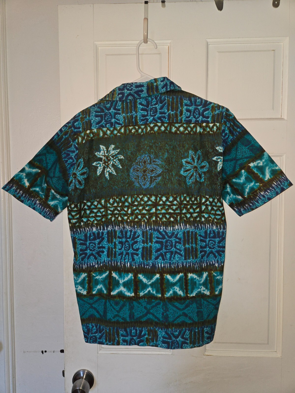 как выглядит 1960 s Blue Tiki Print Cotton Two Piece Cabana Set like Sandwich Isles with Kona фото