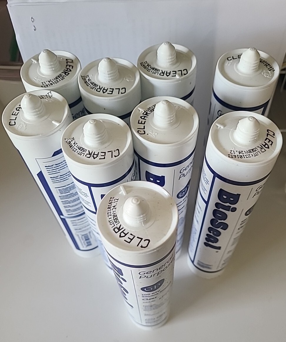 Lot of 9 BioSeal General Purpose 100 RTV Silicone Sealant Cartridges Clear Caulk