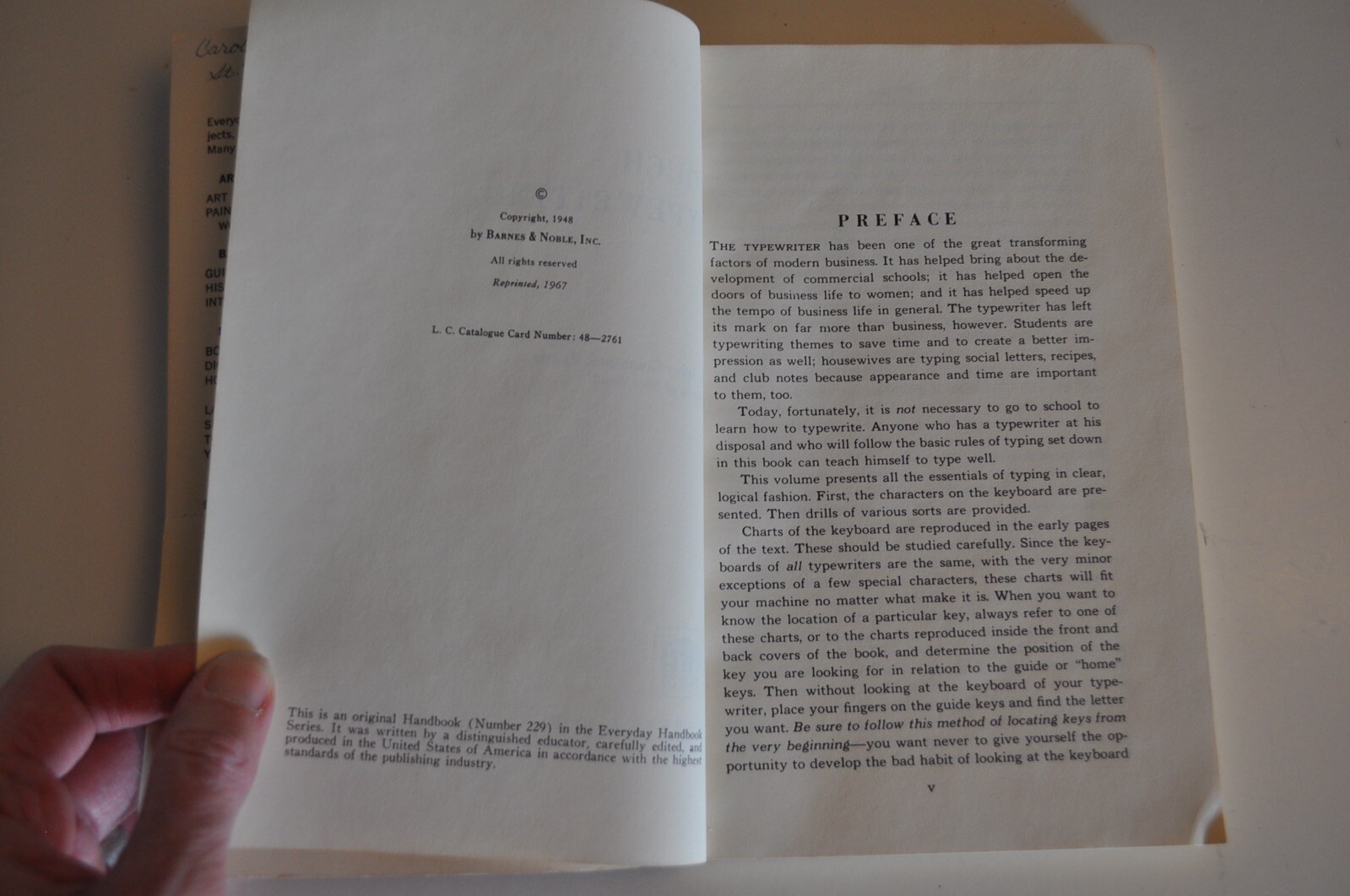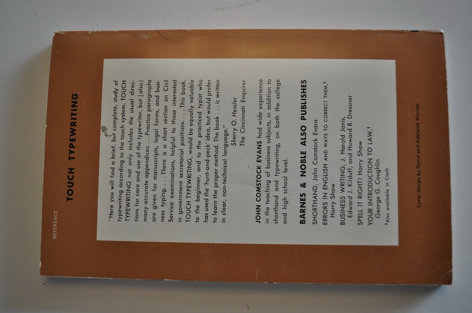 Vintage 1967 Touch Typewriting Book Paperback Barnes Noble