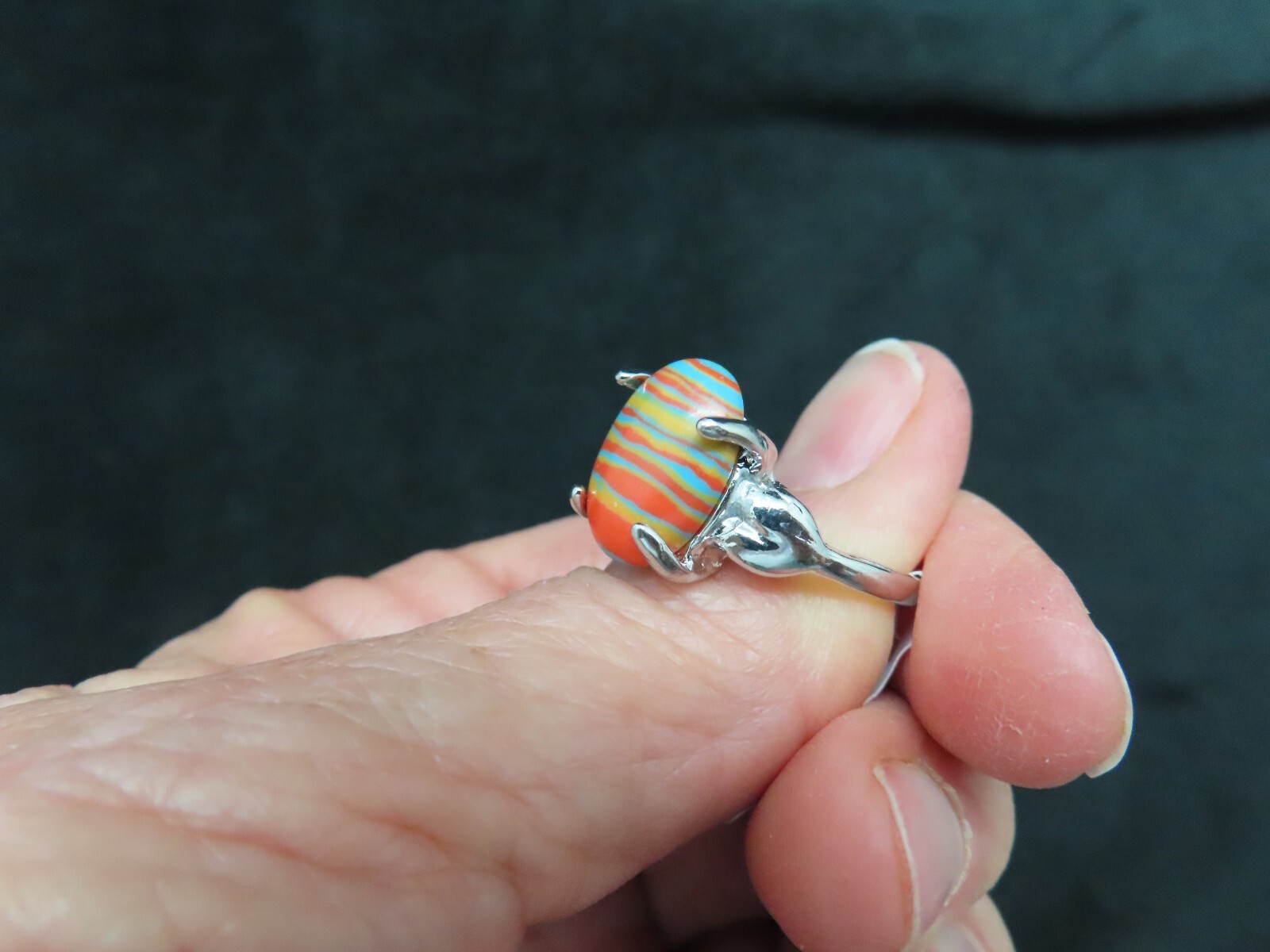 New Stock Silver Tone Art Glass Ring European Tag Size 8 1/2 NN