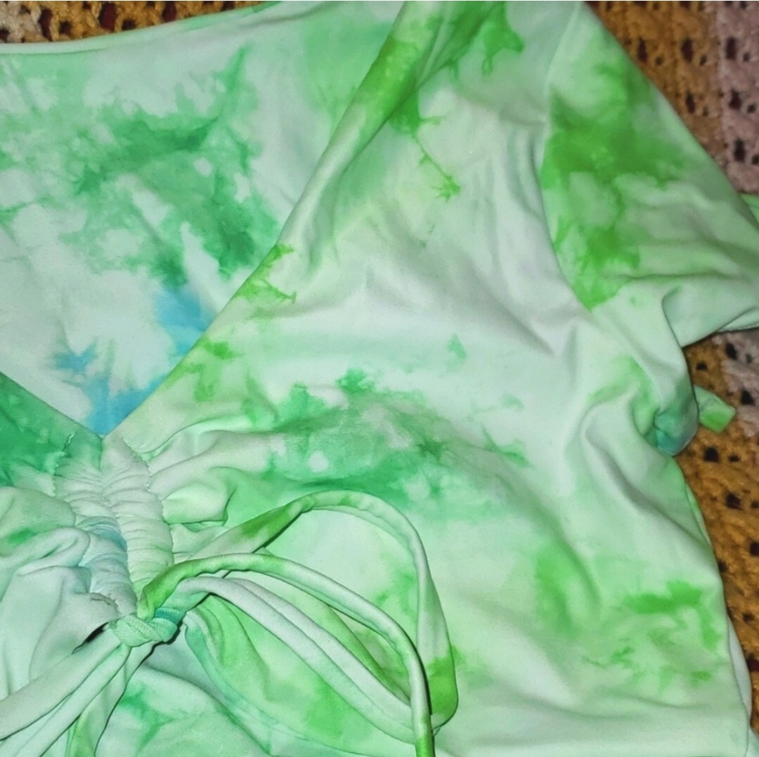 как выглядит Zaful green tie dye 3 piece bikini Size Medium фото