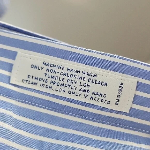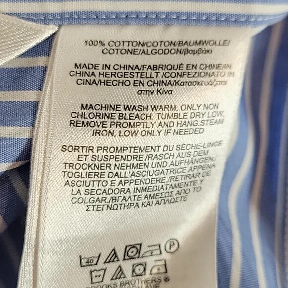 как выглядит Brooks Brothers 17 6/7 Blue White Stripe Slim Fit The Original polo dress Shirt фото