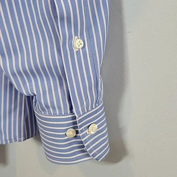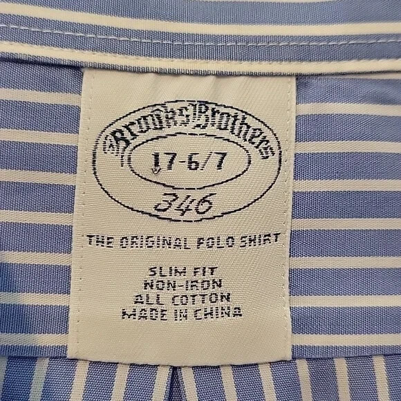 Brooks Brothers 17 6/7 Blue White Stripe Slim Fit The Original polo dress Shirt